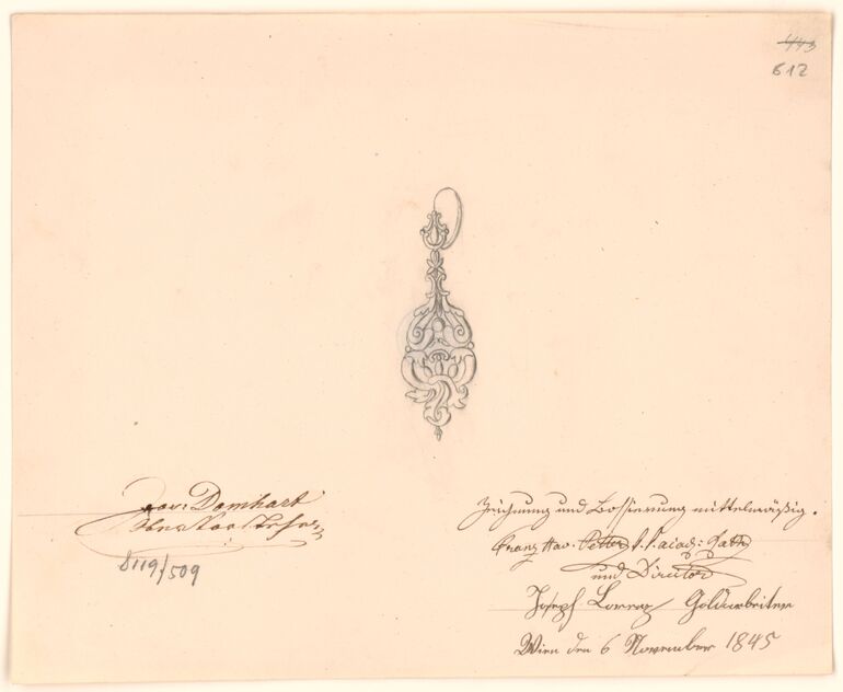 Akad. Zeichnung: 6.11.1845; Ohrgehänge; MAK, K.I. 8119/509