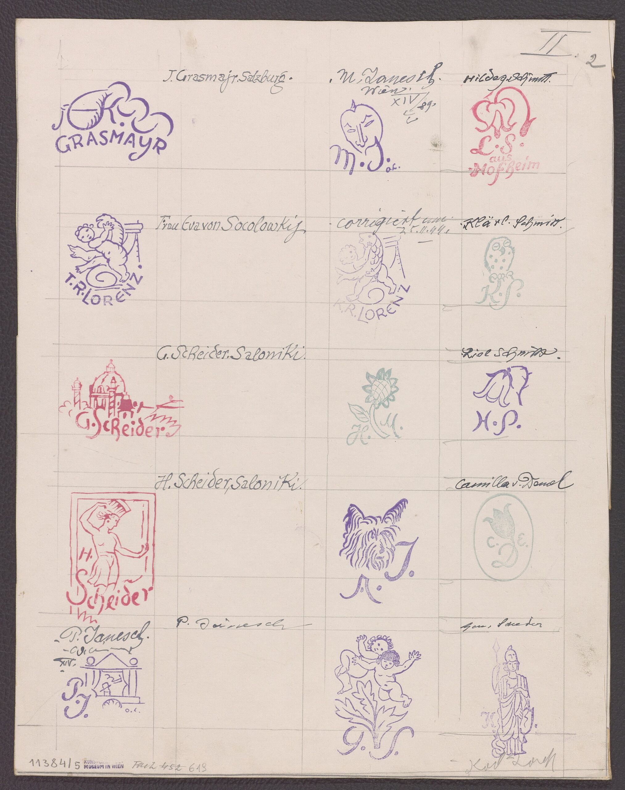 Stempelabdruck, 19 Buchzeichen entworfen von Oskar Laske, Oskar Laske, MAK Inv.nr. KI 11384-5