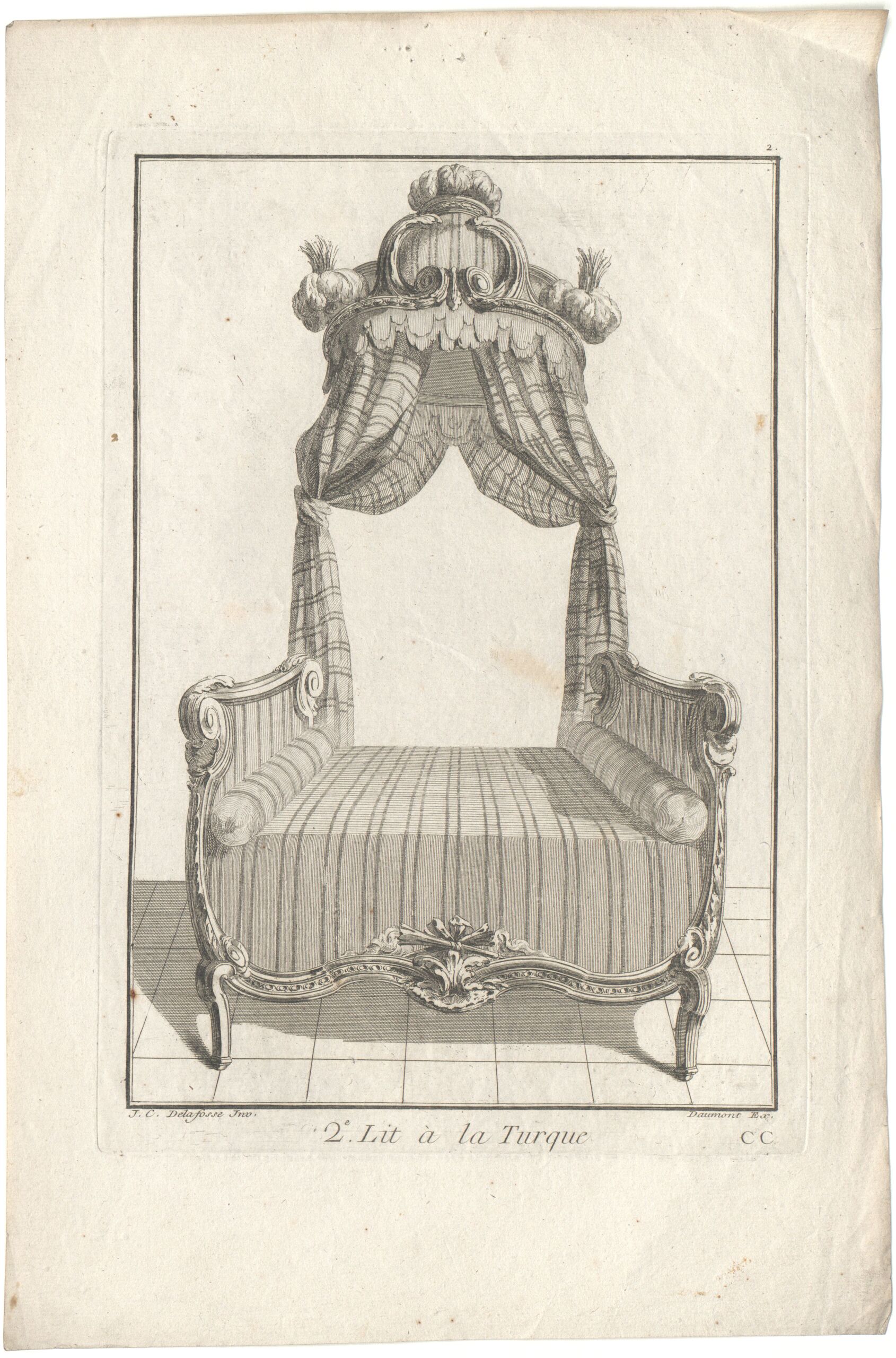 Ornamentstich, „2. e Lit à la Turque“, Blatt 2 aus der Folge CC (Betten) aus dem zweiten Band des Reihenwerks, herausgegeben von Daumont, Jean-Charles Delafosse, MAK Inv.nr. KI 15262-13