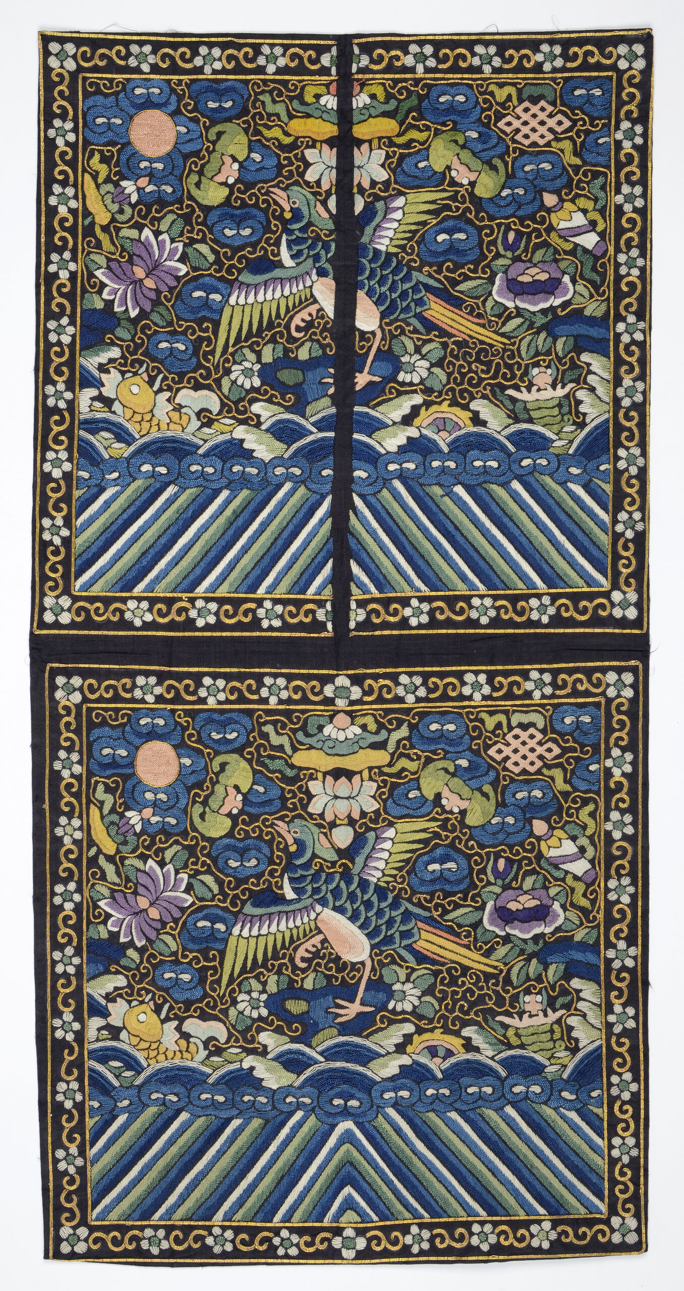 - 2 Mandarin-Distinktionszeichen (buzi) mit Goldfasan (deskriptiver Titel)