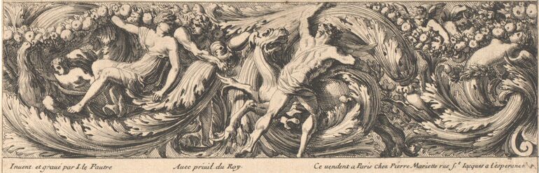 - Druckgrafik, Der Kampf der Zentauren, Blatt aus einer Folge von Friesen mit Schlachten und Meeresgöttern, herausgegeben von Jean Le Blond