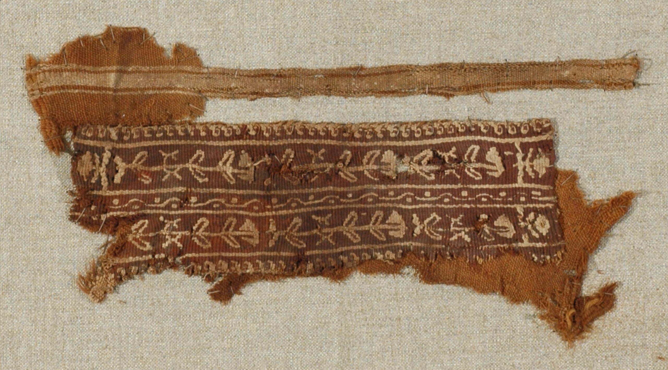 - Ärmelfragment mit Streifen und einem Doppelstreifen mit linear stilisiertem Pflanzendekor (deskriptiver Titel)