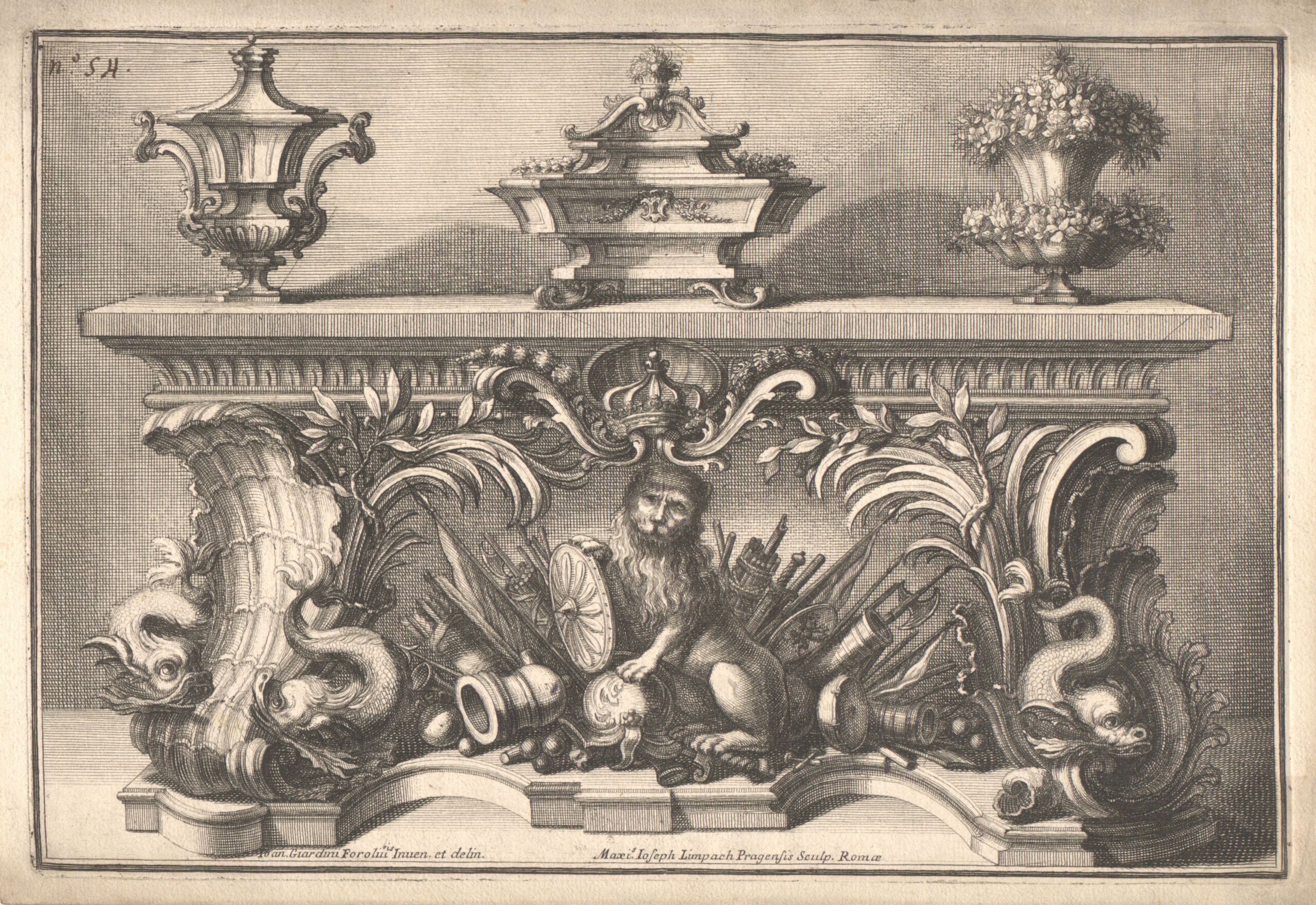 - Altar, Blatt aus der Folge „Disegni diversi inventati e delineati da Giovanni Giardini da Forlí. etc. Parte Prima“ (vom Bearbeiter vergebener Titel)