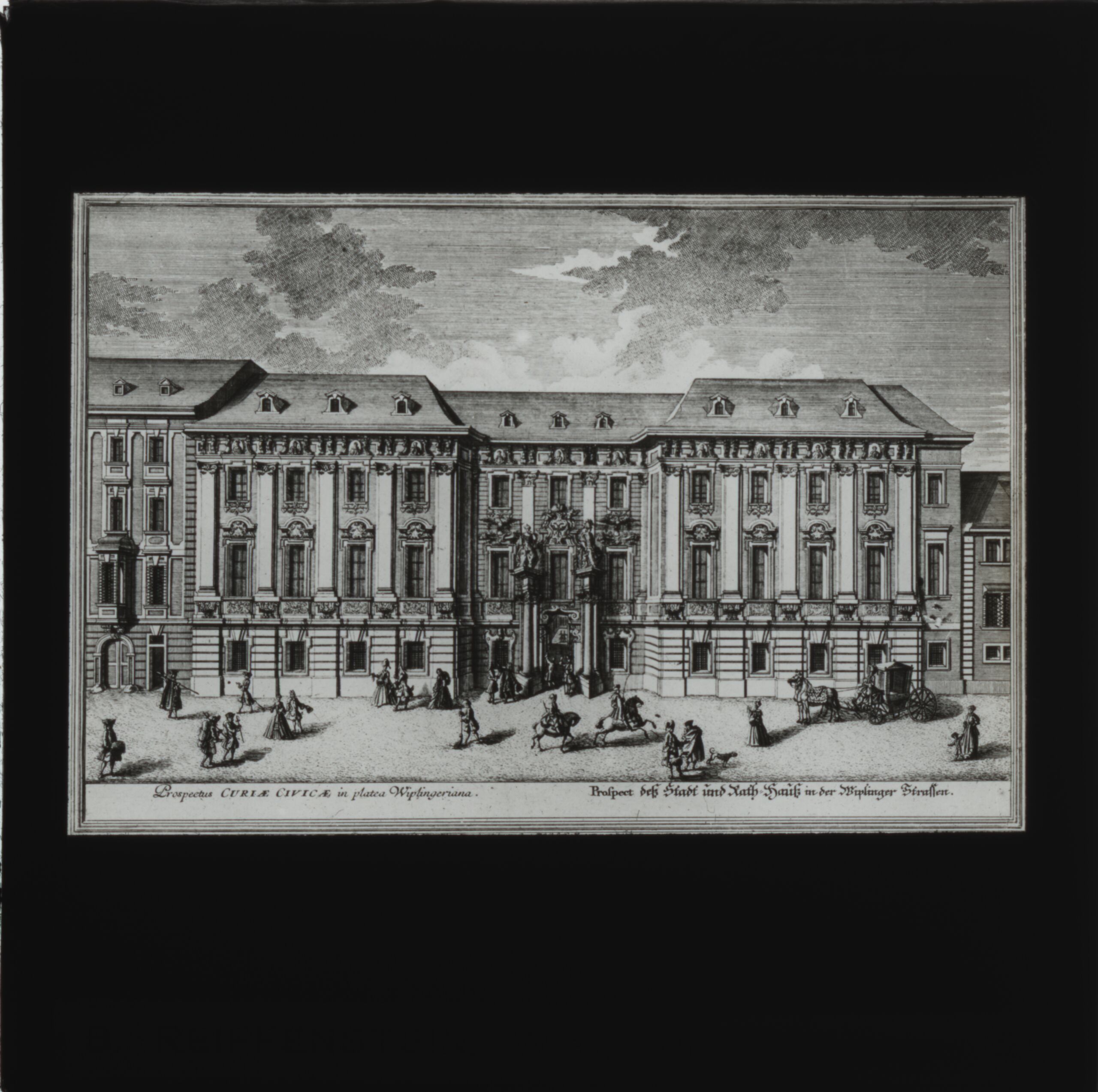 - Text am Objekt: Prospectus CURIAE CIVICAE in platea Wiplingeriana. Prospect deß Stadt und Rath-Hauß in der Wiplinger Strassen.