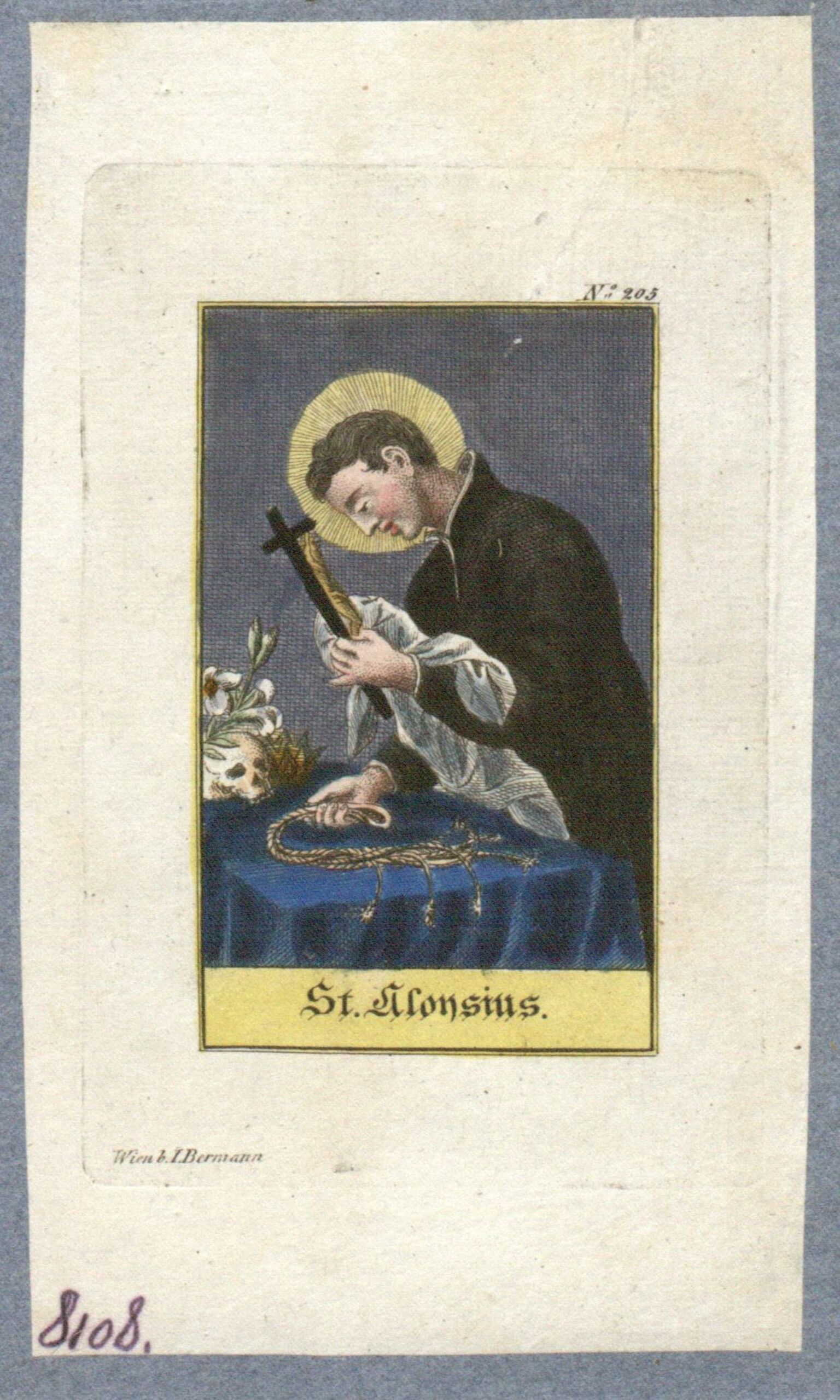 - Text am Objekt: N° 205.; St. ALOYSIUS.; Wien b. I. Bermann