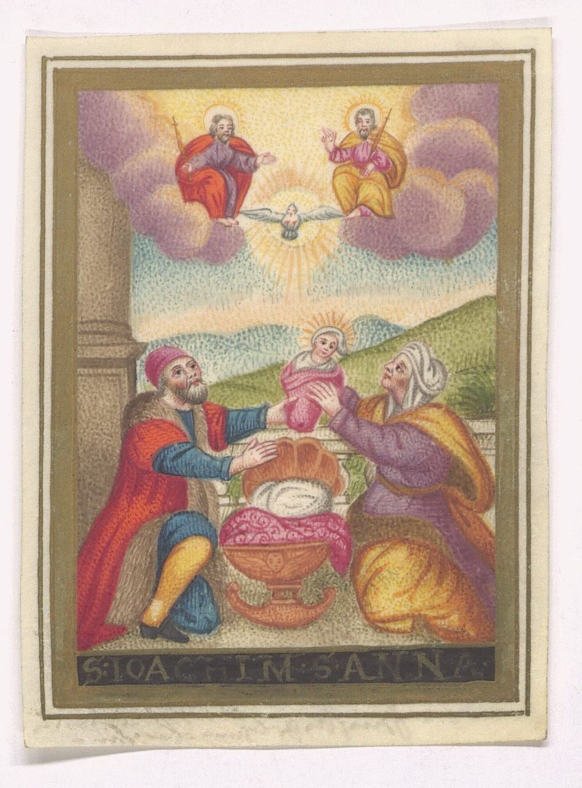 - Text am Objekt: S. IOCHIM S. ANNA; Verso: Handschriftlicher Text, etwas abgerieben [Feder in Braun]