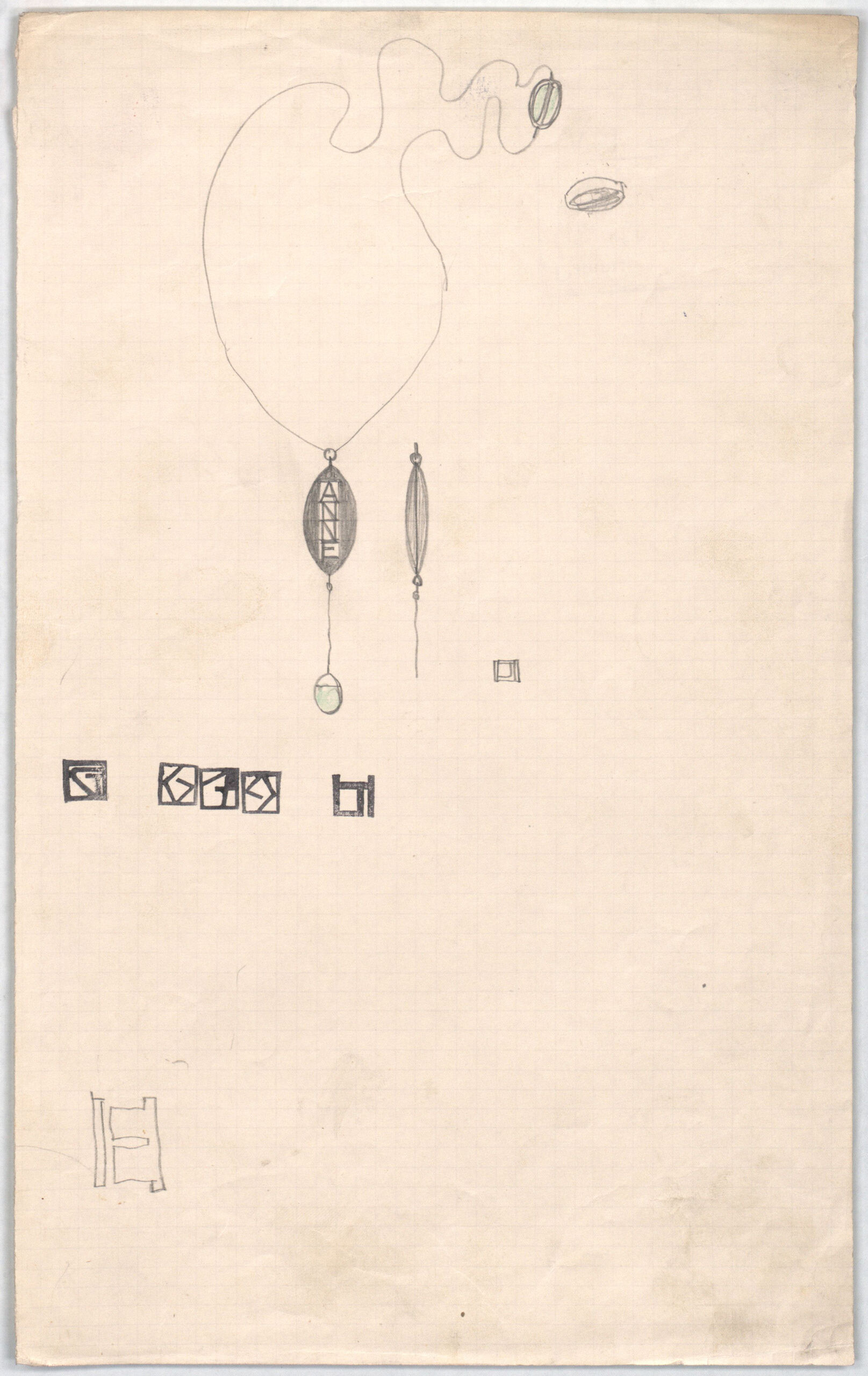 Entwurf, "Anhänger" zur Taufe, Widmung: "Anne", Wiener Werkstätte, MAK Inv.nr. KI 12140-74