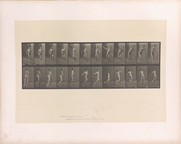 - Text am Objekt: Animal Locomotion. Plate 294. / Copyright 1887, by Eadweard Muybridge. All rights reserved