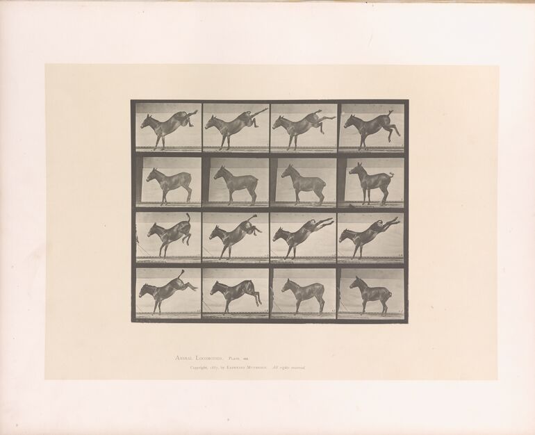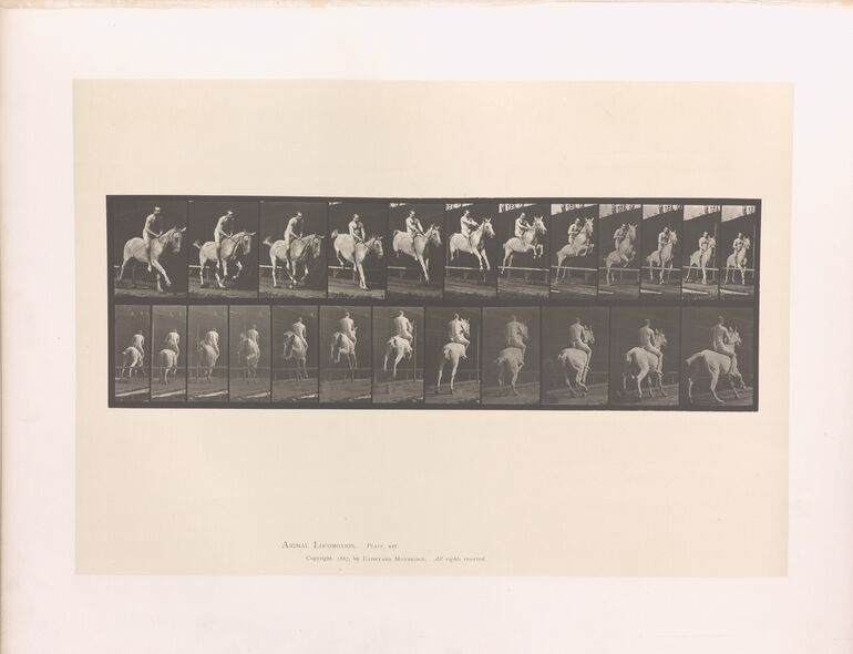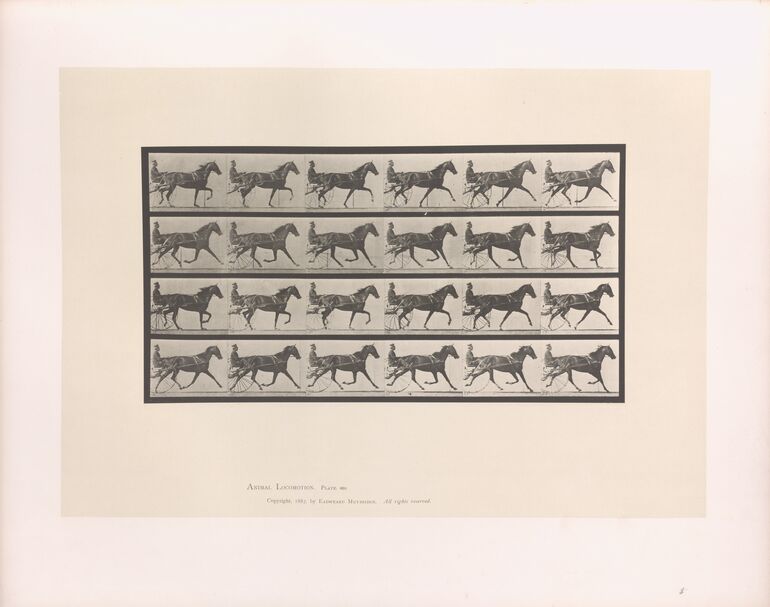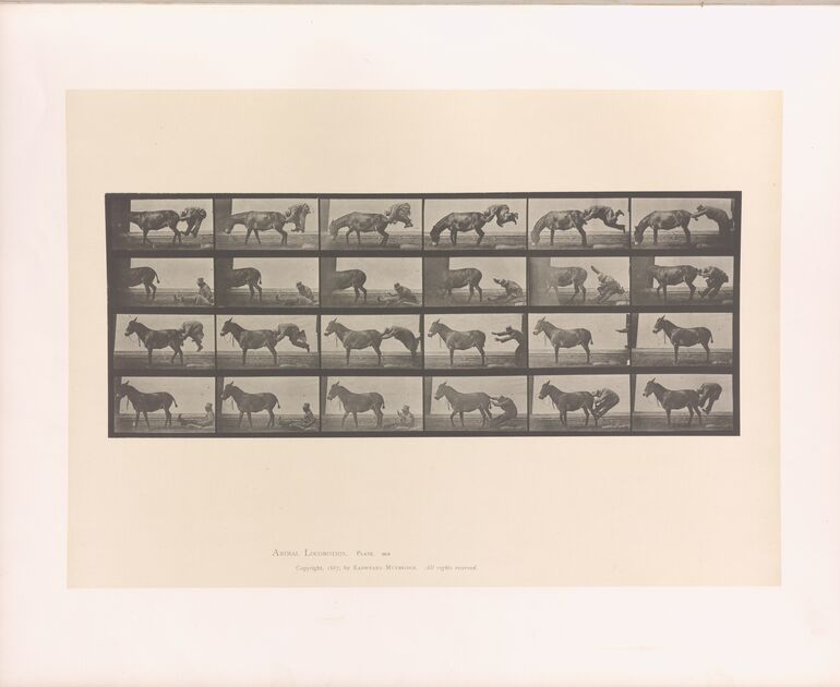 - Text am Objekt: Animal Locomotion. Plate 314. / Copyright 1887, by Eadweard Muybridge. All rights reserved