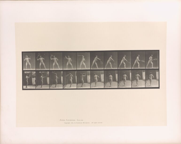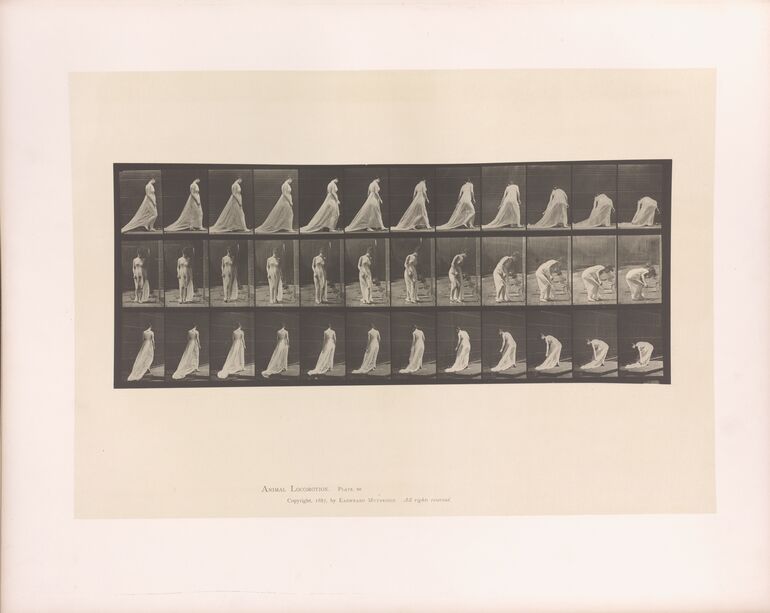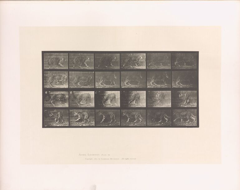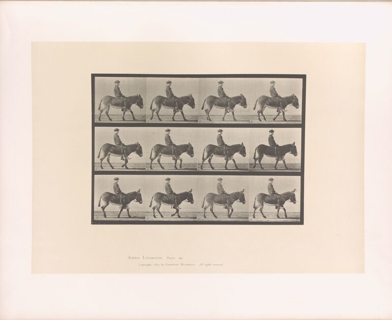 - Text am Objekt: Animal Locomotion. Plate 713. / Copyright 1887, by Eadweard Muybridge. All rights reserved