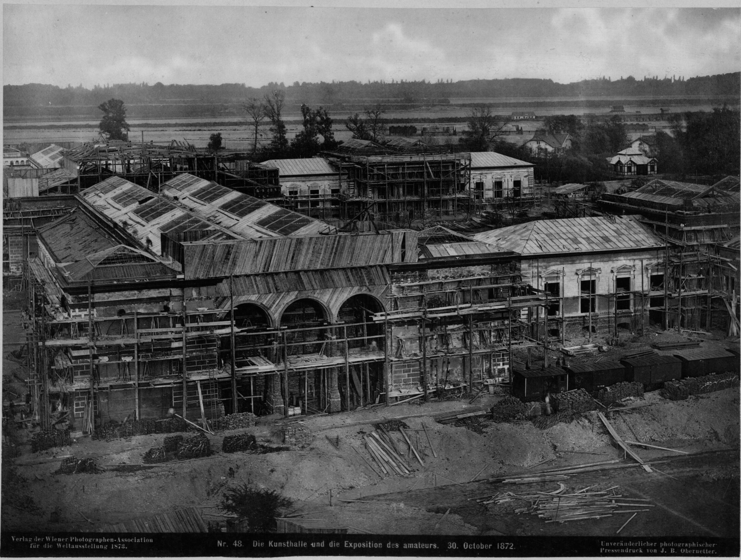 - Text am Objekt: Weltausstellung in Wien 1873 / Bauten auf dem Ausstellungsplatze / Photographie und Verlag der concessionirten / Wiener Photographischen Association. am Foto: Die Kunsthalle und die Exposition des amateurs