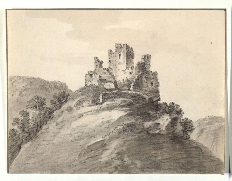 - Text am Objekt: Sauerhof und Engelsbad in Baden. (in schwarzer Tusche auf dem unterlegten Papier)