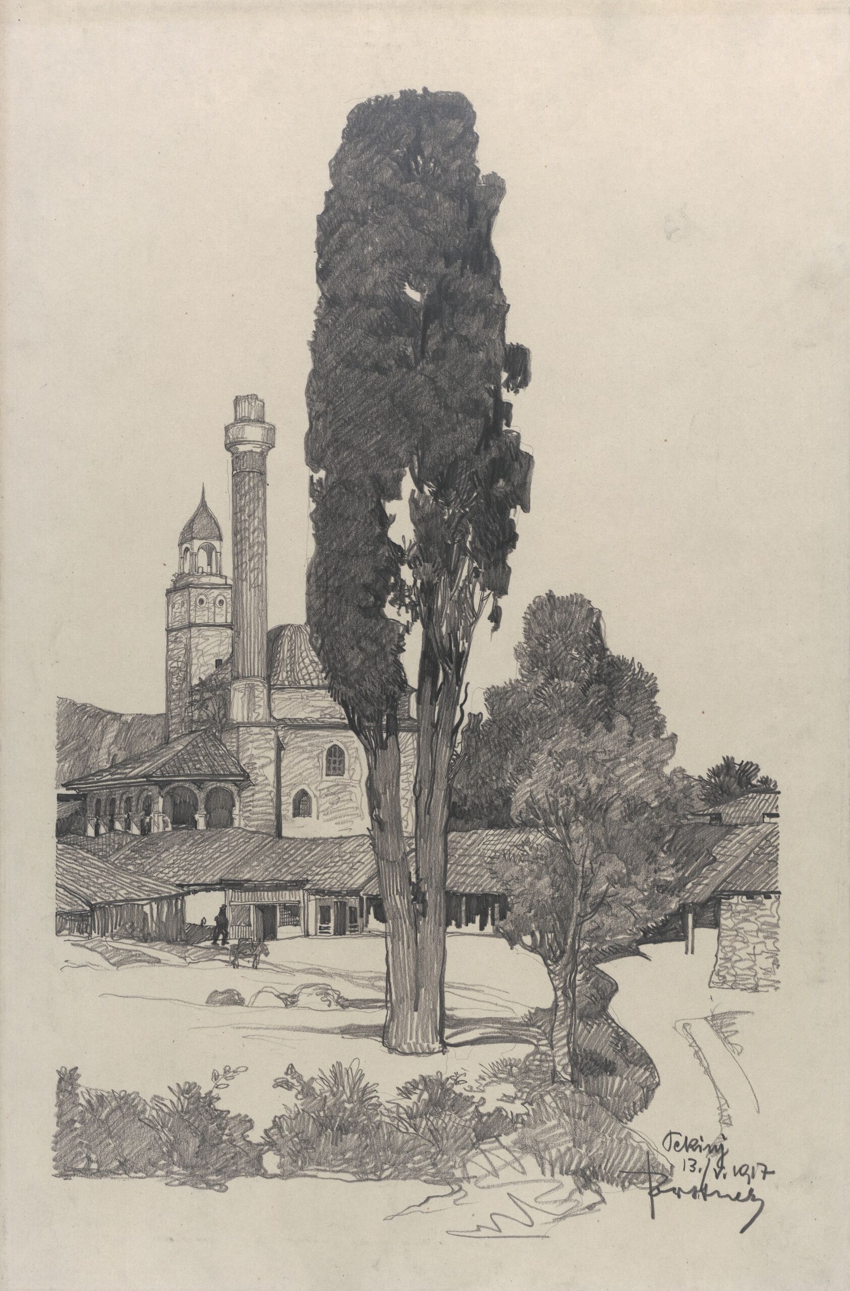 Reiseskizze, Ansicht einer albanischen Stadt, Leopold Forstner, MAK Inv.nr. KI 8120-35