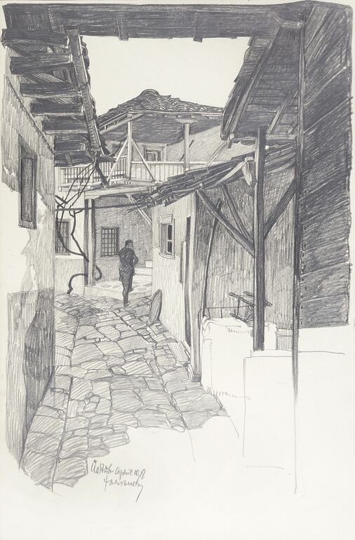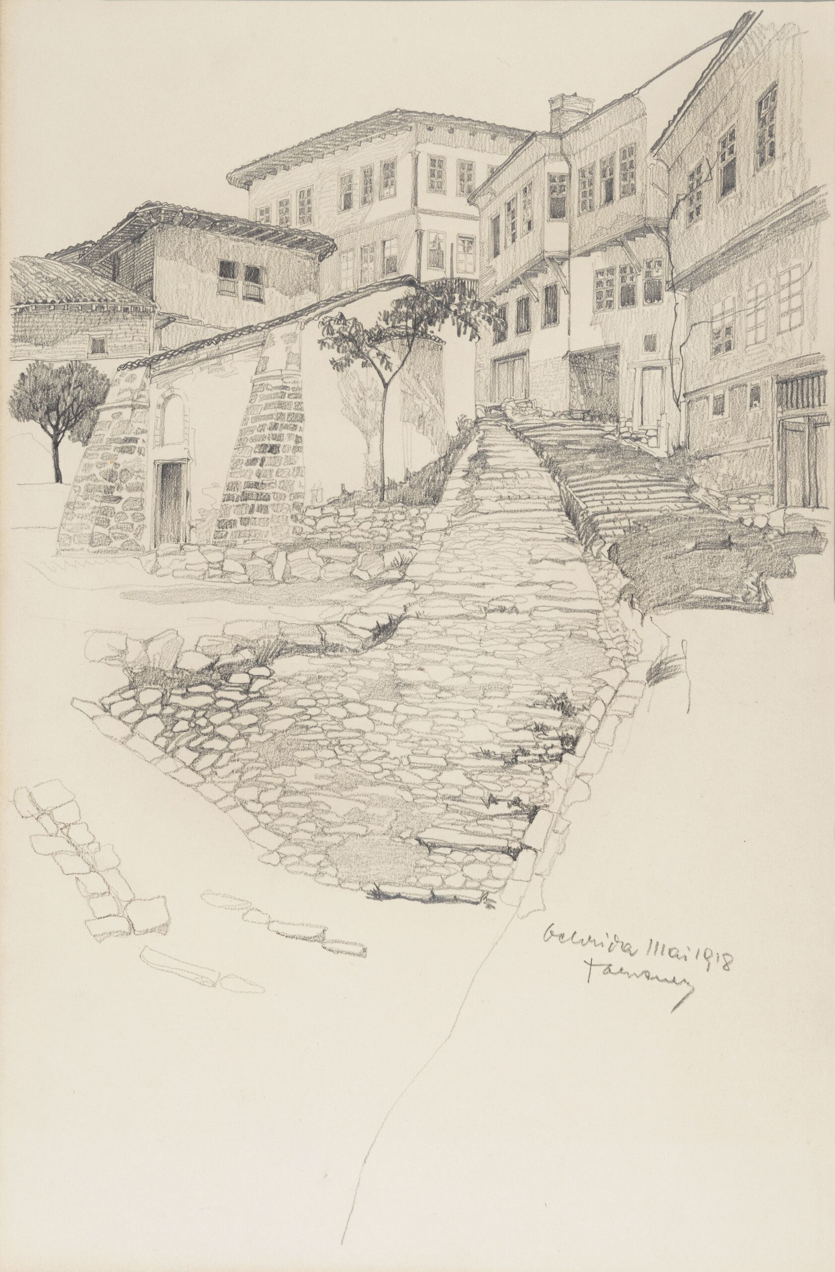 Reiseskizze, Ansicht einer Straßenabzweigung, Leopold Forstner, MAK Inv.nr. KI 8120-27