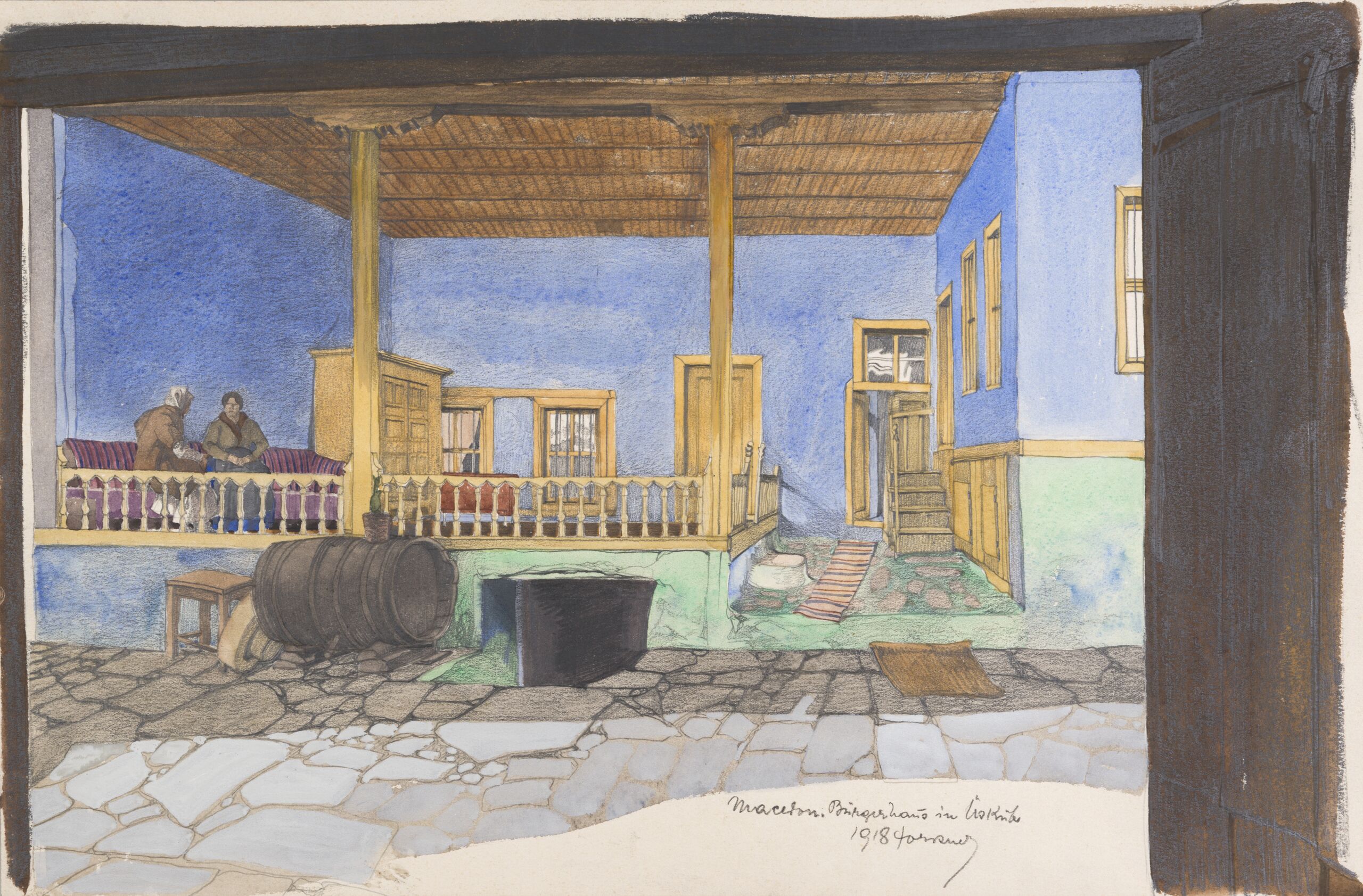 Topografische Ansicht, Ansicht eines makedonischen Bürgerhauses, Leopold Forstner, MAK Inv.nr. KI 8120-29