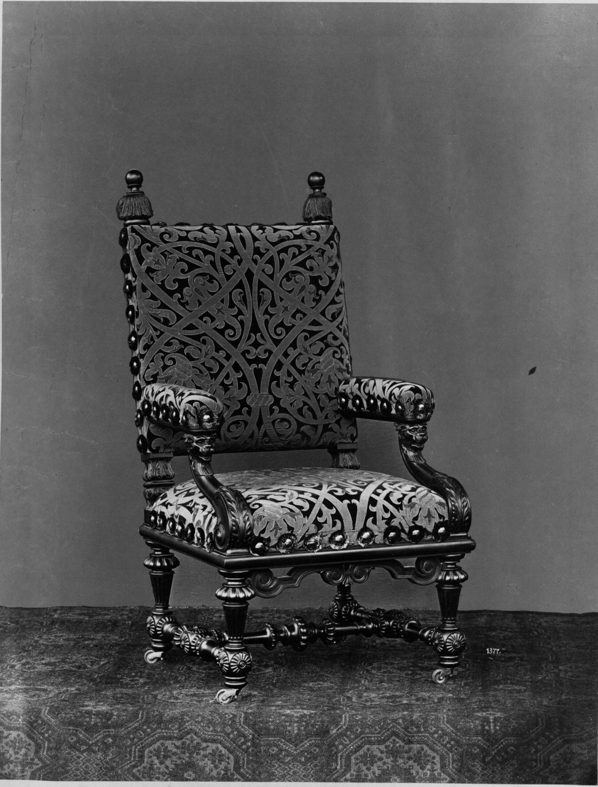 - Text am Objekt: Exposition universelle de Vienne 1873.; Universal Exhibition of Vienna 1873; Weltausstellung in Wien 1873 / Photographie und Verlag der concessionirten / Wiener Photographischen Association: Sessel von Philipp Haas & Söhne, Wien