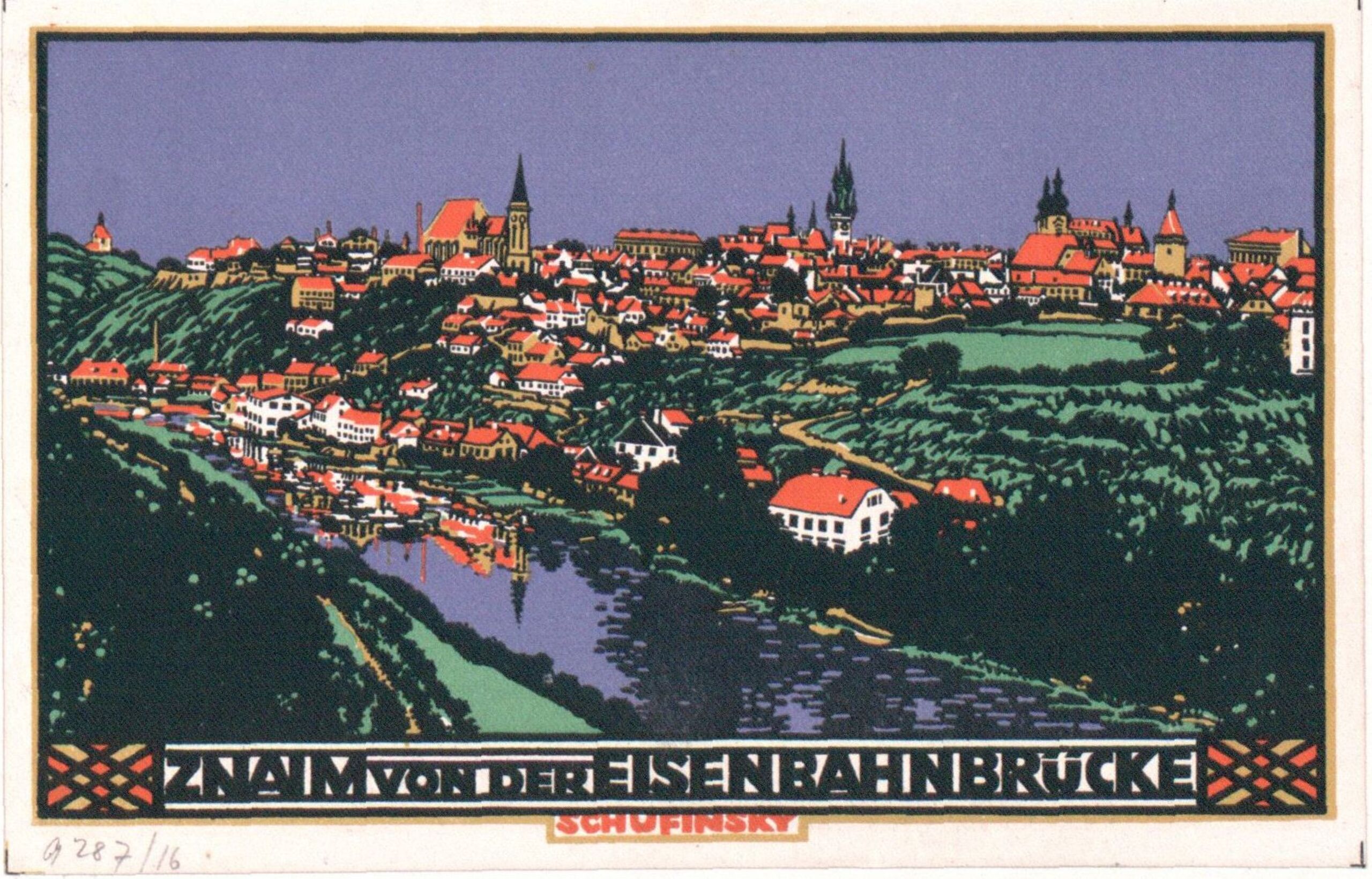 Postkarte, Ansichtskarte mit Blick über Znojmo, Viktor Schufinsky, MAK Inv.nr. KI 9287-16