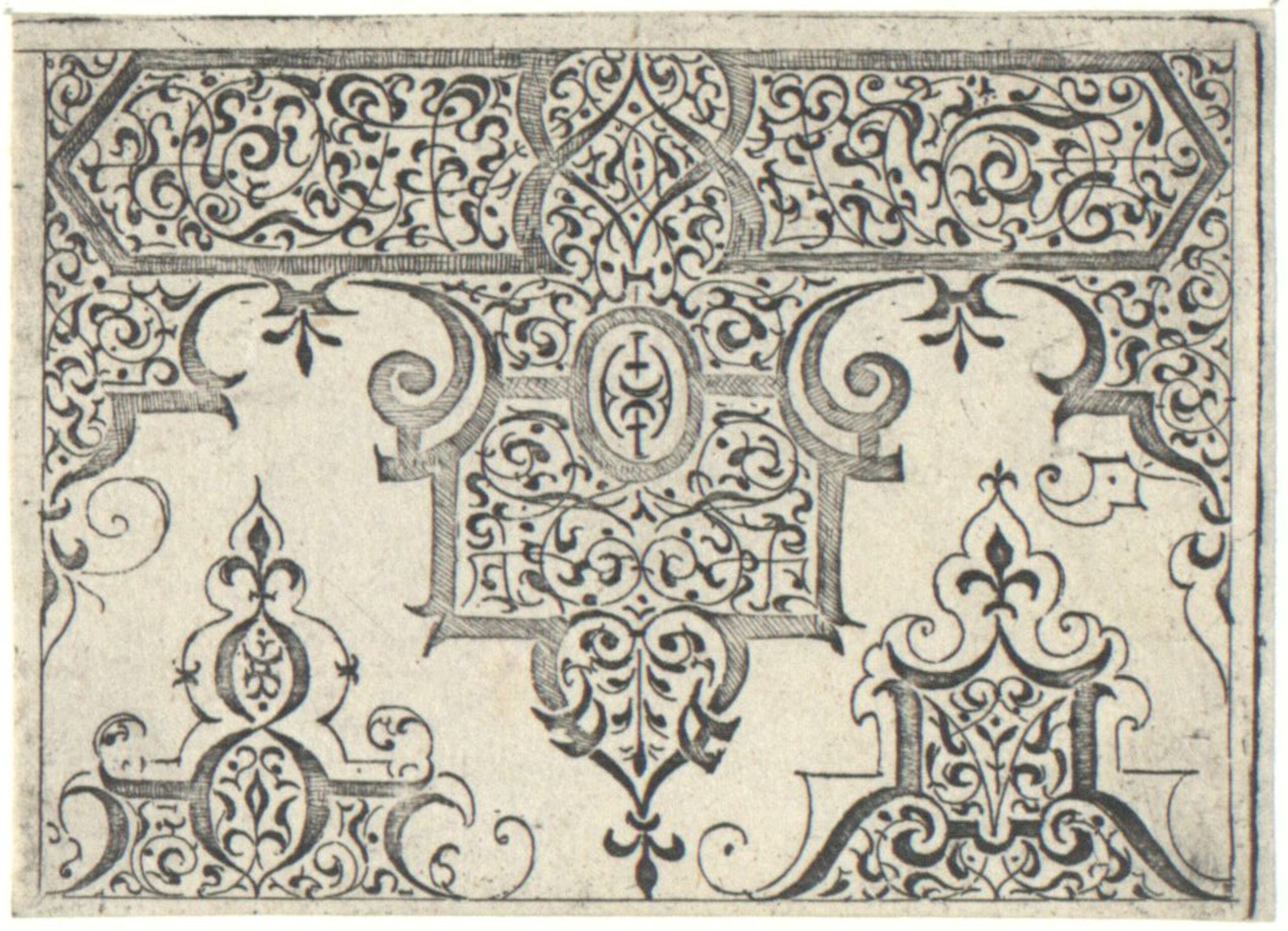 Ornamentstich, Arabesken in Bandelwerk. Aus einer Folge von Vorlagen für Ätz- und Tauschirarbeiten., Virgil Solis, MAK Inv.nr. KI 2769-3