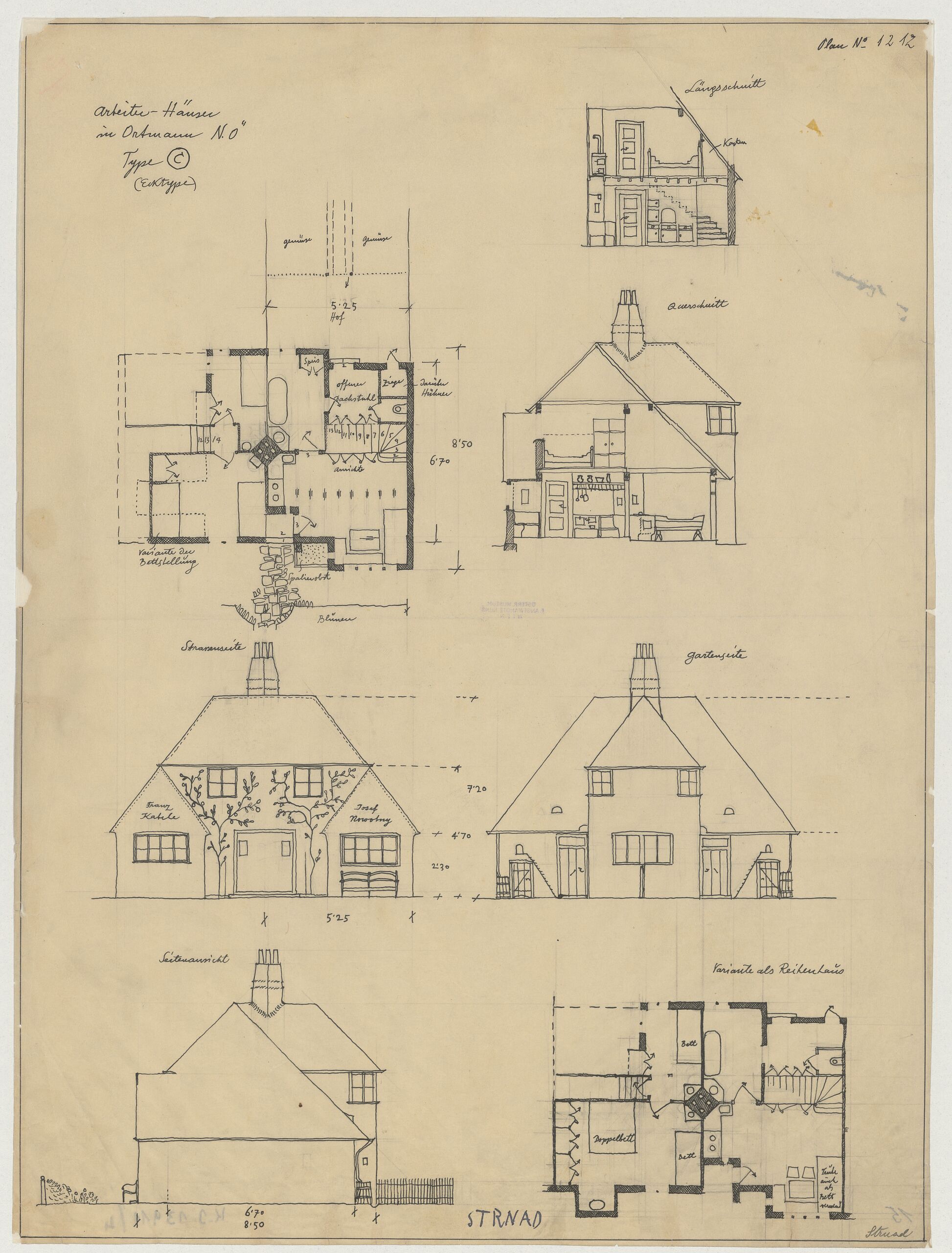 Plan, Arbeiterkolonie Ortmann [für die Ausstellung 150 Jahre Kunstgewerbeschule eingetragen], Oskar Strnad, MAK Inv.nr. KI 13911-4