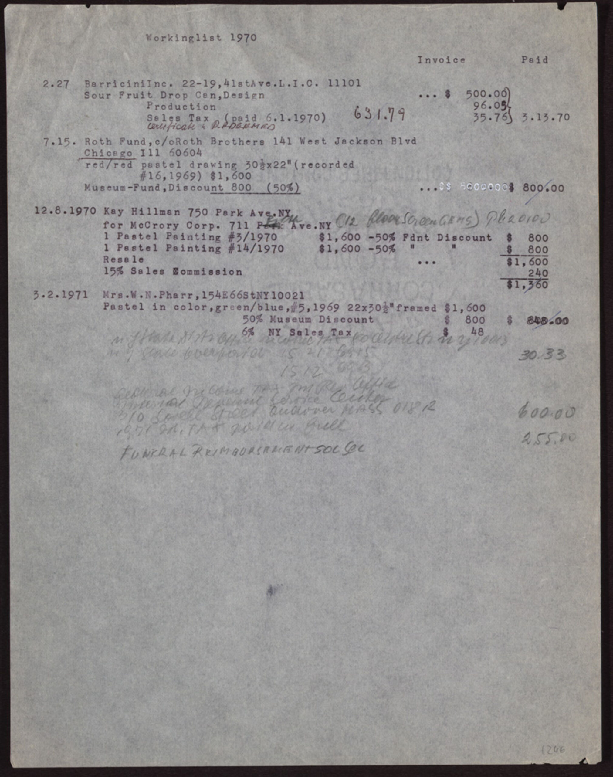 Inventarliste, Arbeitslisten und Listen über die Arbeitseinnahmen Joseph Binders, Carla Binder, MAK Inv.nr. KI 14145-1246-13