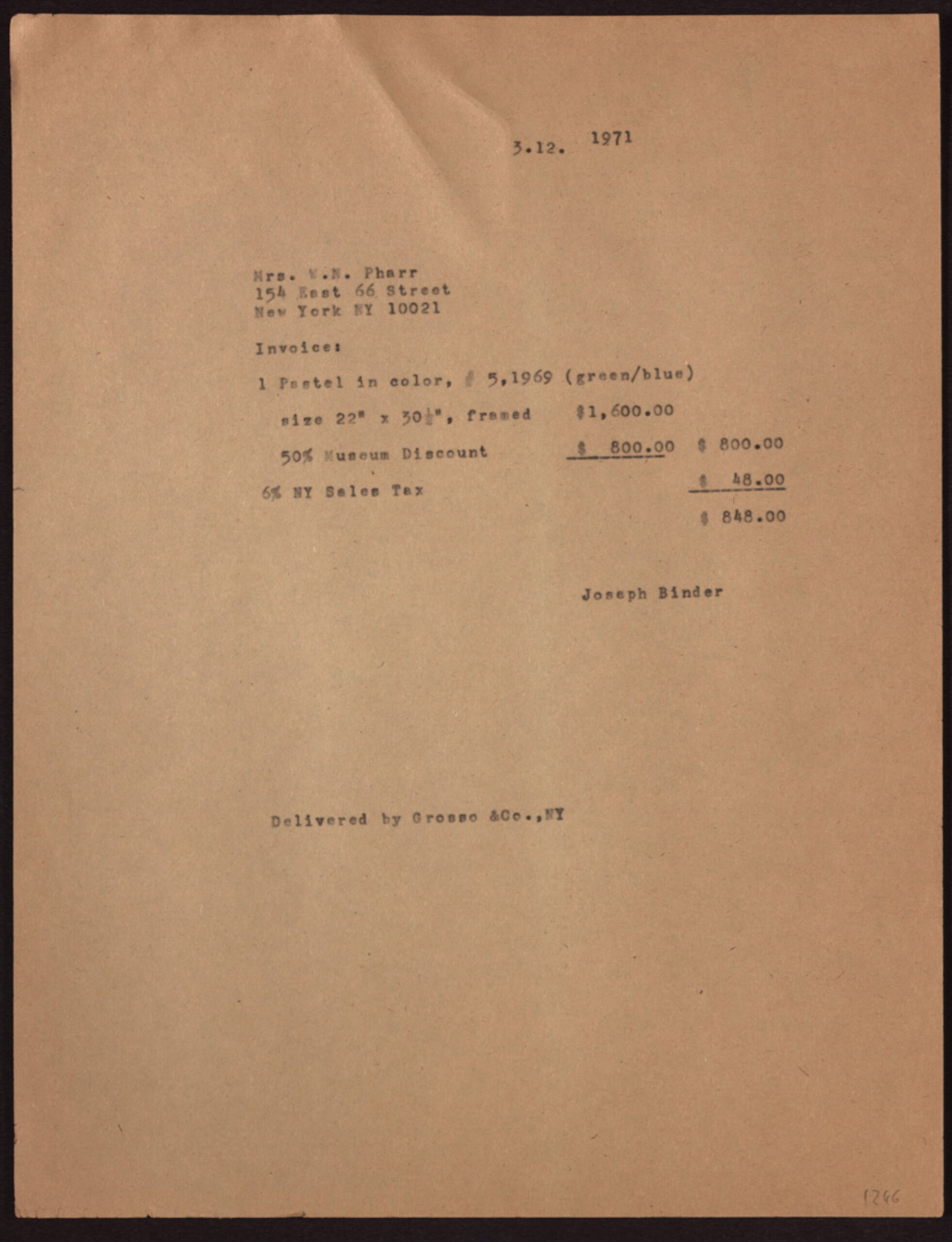 Inventarliste, Arbeitslisten und Listen über die Arbeitseinnahmen Joseph Binders, Carla Binder, MAK Inv.nr. KI 14145-1246-15