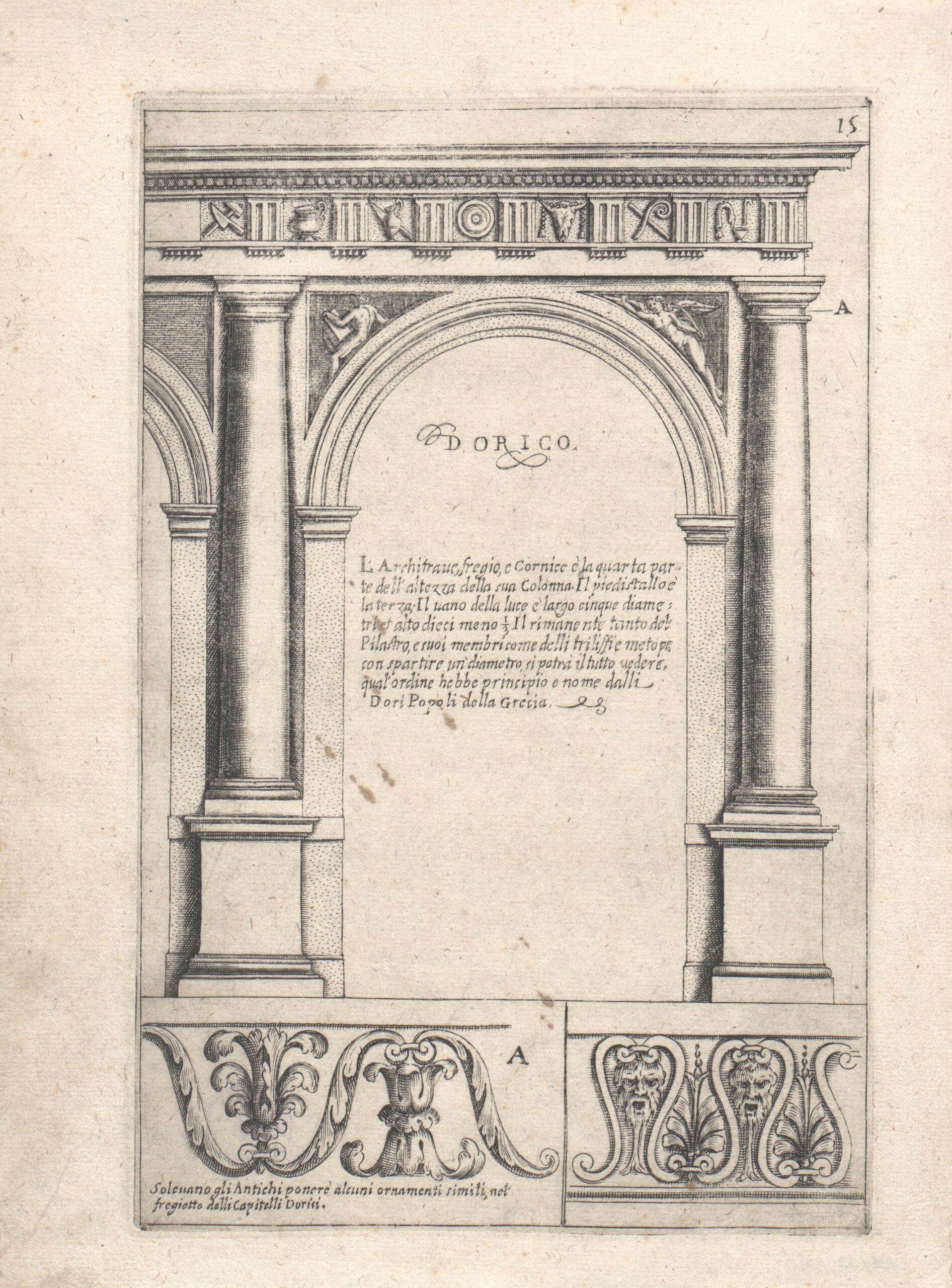 Architekturdarstellung, Arkade dorischer Ordnung, Blatt 15 aus der Folge „Architettura con diversi ornamenti cavati dall’antico da Gio. Battista Montano Milanese etc.”, herausgegeben von Callisto Ferrante, Giovanni Battista Montano, MAK Inv.nr. KI 1-1041-15