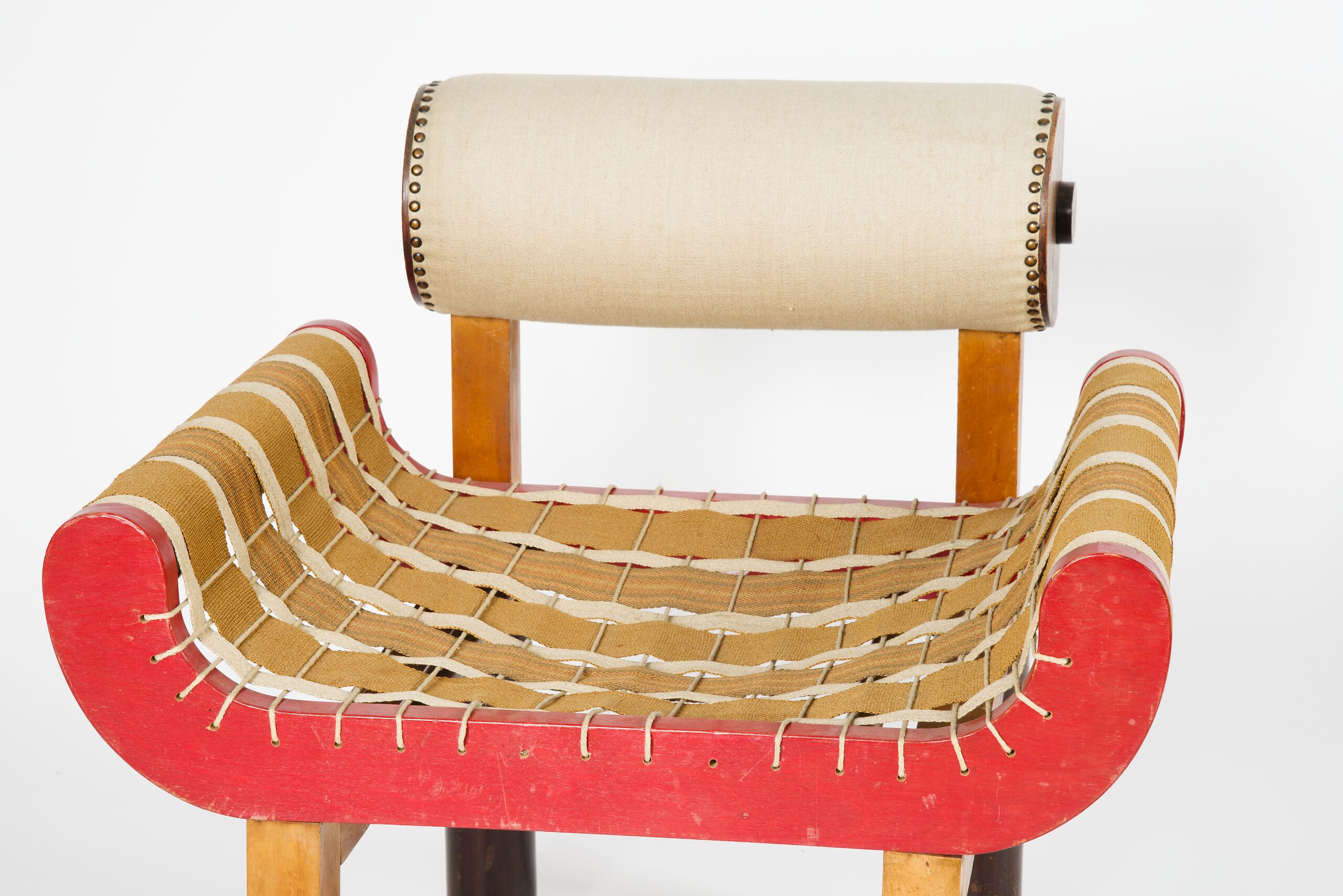 Franz Singer und Friedl Dicker hatten seit 1917 gemeinsam die Wiener Kunstschule von Johannes Itten besucht und waren diesem 1919 an das neu gegründete Bauhaus nach Weimar gefolgt. 1923 gründeten sie in Berlin die Werkstatt Bildender Kunst und nach ihrer Rückkehr nach Wien 1925 das erfolgreiche Architekturbüro Singer–Dicker, mit dem sie zu den wenigen Wiener ArchitektInnen gehörten, die Bauten sowie Wohn- und Geschäftseinrichtungen im Bauhaus-Stil schufen. Für die Wohnung von Hugo und Alice Moller entwarfen sie 1927 einen ausgefallenen, fast exotisch anmutenden Fauteuil, dessen farbig gestaltete Gurtbespannung die Farbenlehre Ittens aufgreift.