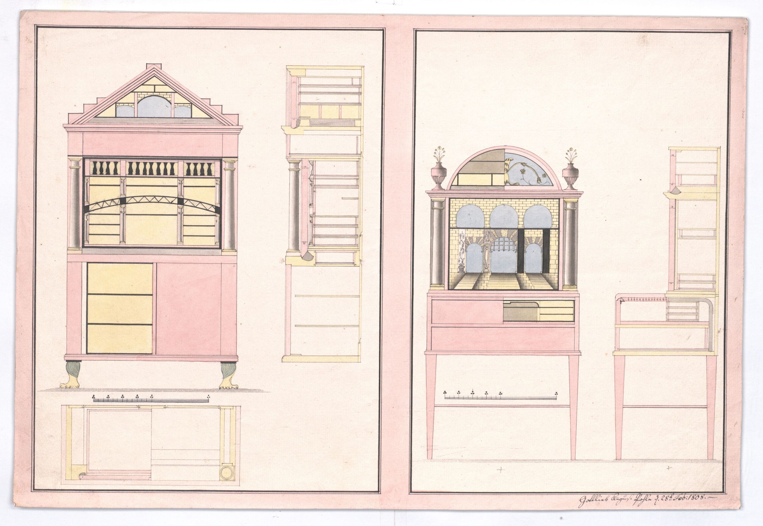 - Aufriß, Grundriß und Querschnitt zweier Sekretäre (vom Bearbeiter vergebener Titel)