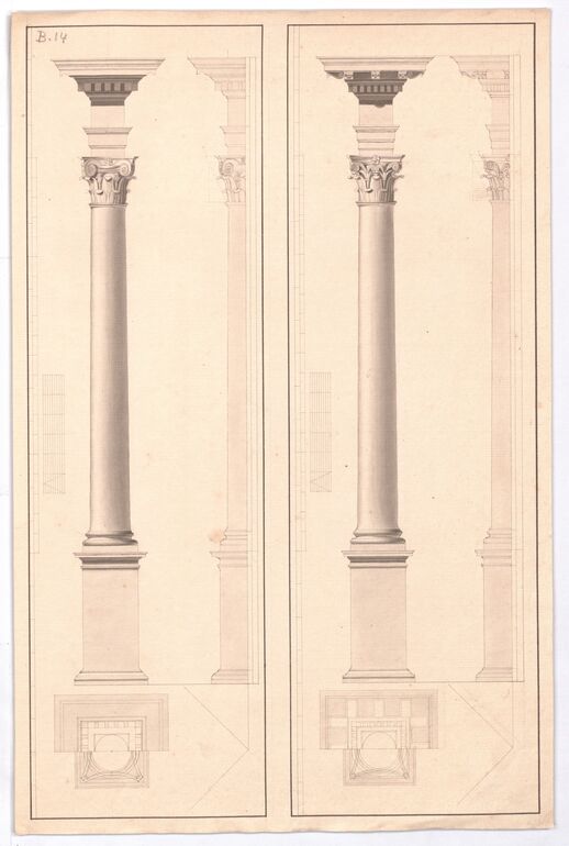 • Grundriss, Aufriß und Grundriß der Ionischen Bogenstellung nach Vignola, Carl Böhlmann, MAK Inv.nr. KI 7710-286