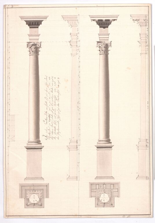 - Aufriß und Untersicht eines Kapitells samt Gebälk der Korinthischen Säulenordnung (vom Bearbeiter vergebener Titel)