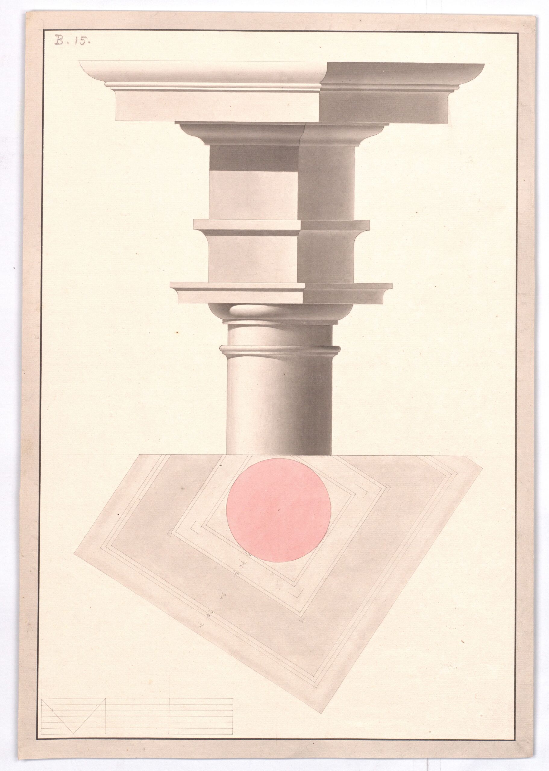 Aufriss, Aufriß und Untersicht eines Kapitells samt Gebälk der Toskanischen Säulenordnung, Carl Böhlmann, MAK Inv.nr. KI 7710-280