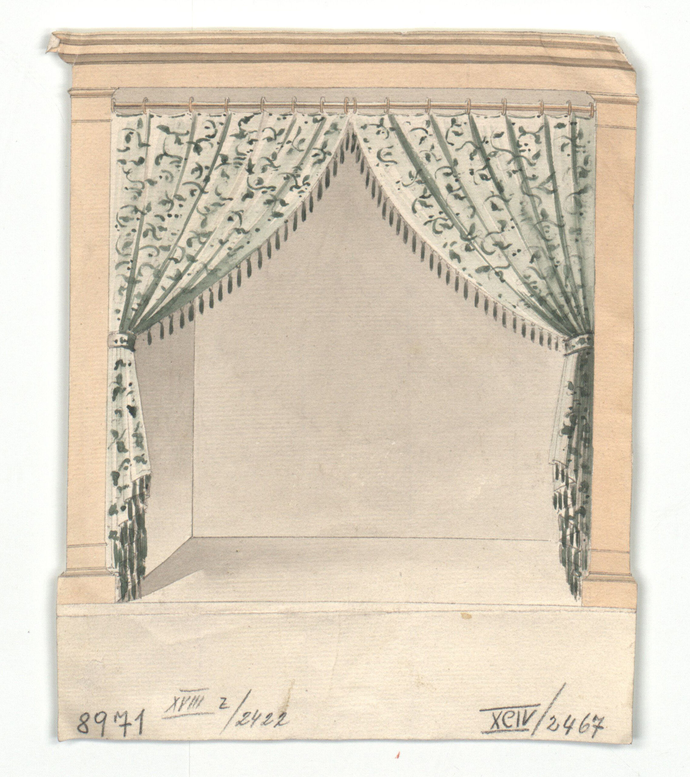 - Ausgeschnittene Möbelzeichnung mit Entwurf für eine Nische mit Wanddraperie (vom Bearbeiter vergebener Titel)