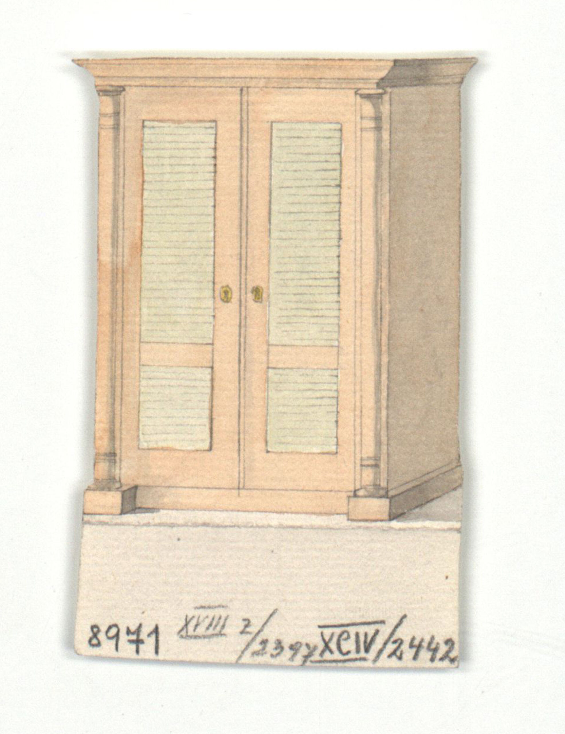 - Ausgeschnittene Möbelzeichnung mit Entwurf für einen Schrank (vom Bearbeiter vergebener Titel)