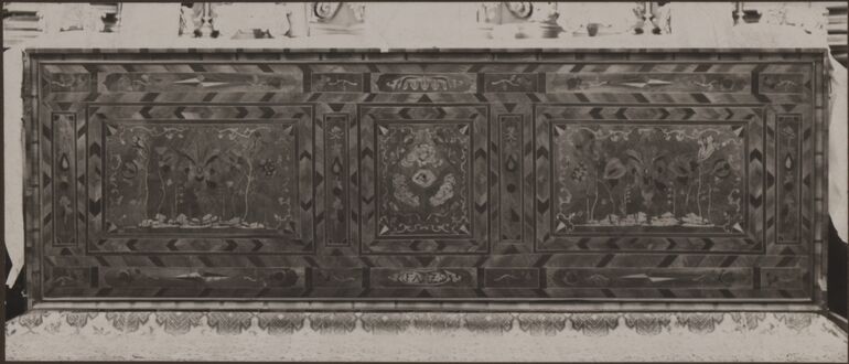 - Beschriftung (Vorderseite) : Aus der k.k. Teppichmanufactur in Linz, 1820. / Ausgezogner (unaufgeschnittener) Fußteppich.