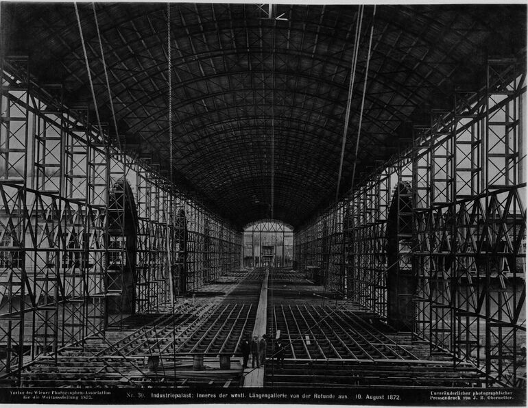 - Text am Objekt: Weltausstellung in Wien 1873 / Bauten auf dem Ausstellungsplatze / Photographie und Verlag der concessionirten / Wiener Photographischen Association. am Foto: Rotunde von aussen
