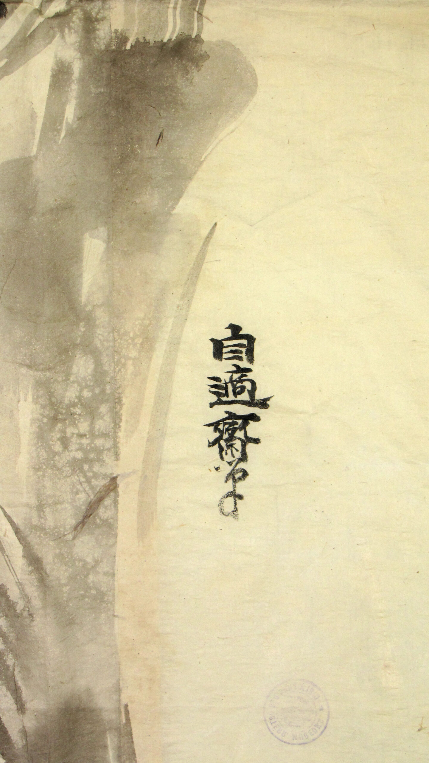 Tuschezeichnung, Bachstelze auf Zweig am Felsen, Kanō Naonobu 狩野尚信, MAK Inv.nr. HM 14427