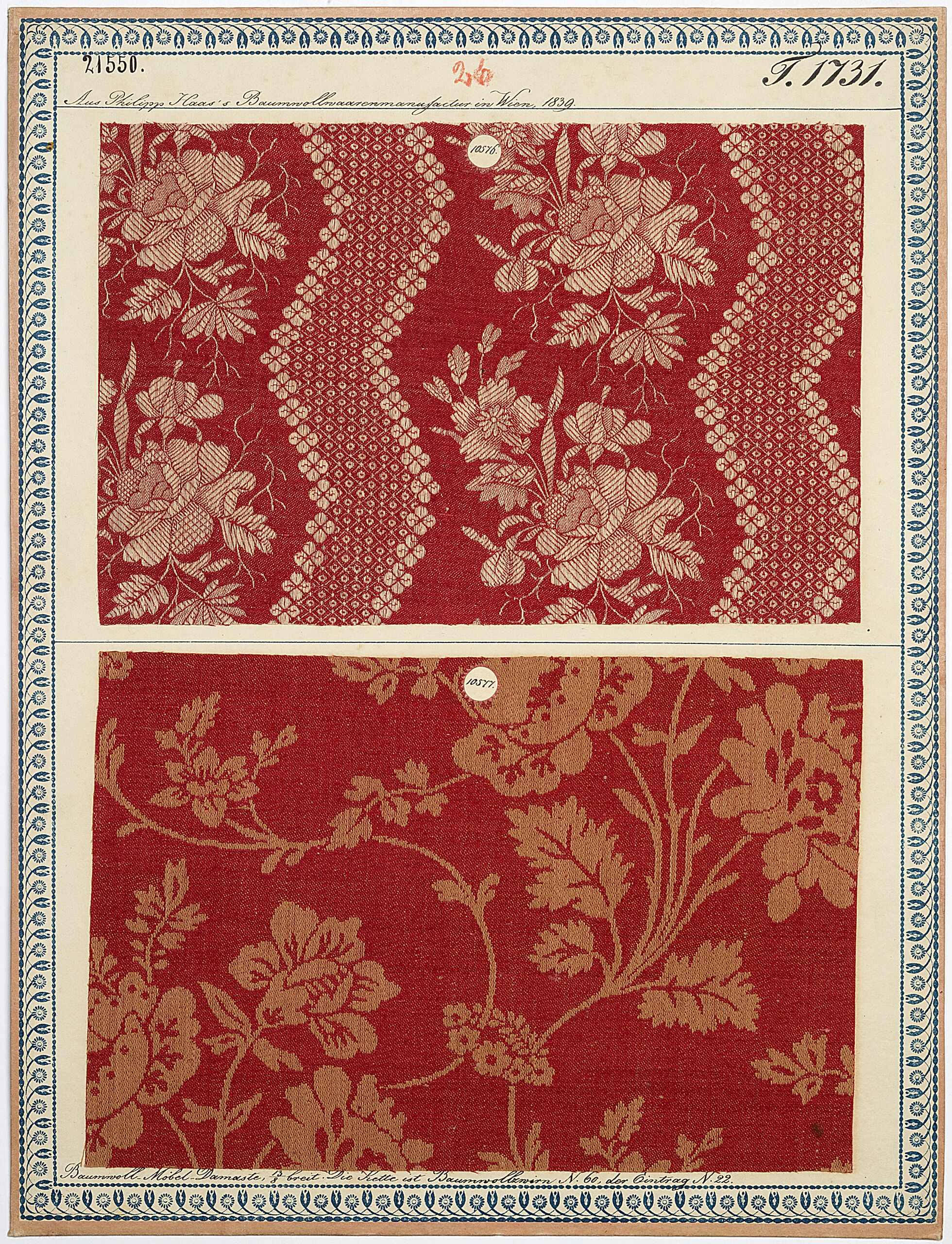 Mustertafel, Baumwoll-Möbel-Damaste, Philipp Haas, MAK Inv.nr. TGM 21550