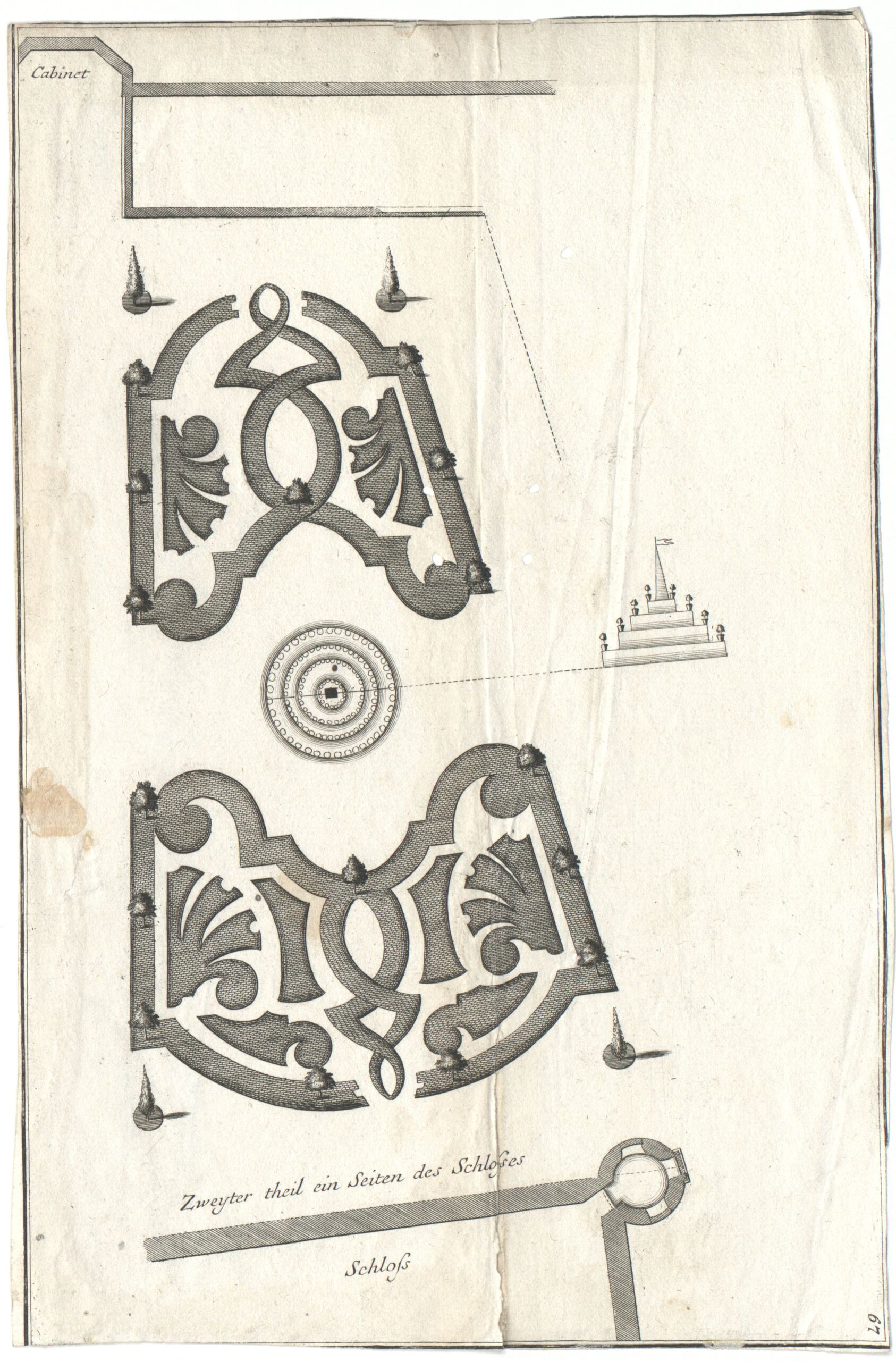 - Text am Objekt: Cabinet. Zweyter theil ein Seiten des Schlosses. Schloss. / 67