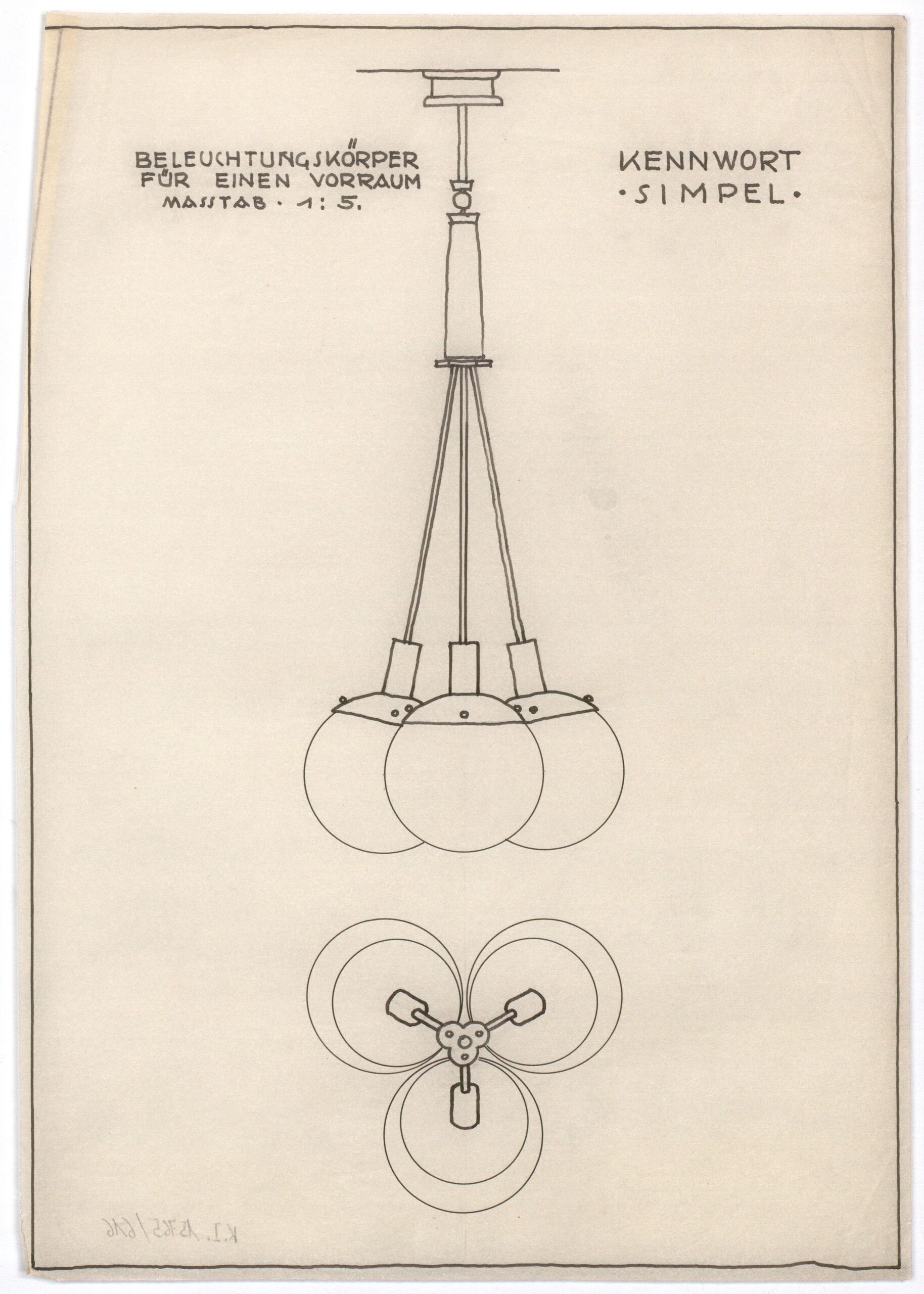 Entwurf, BELEUCHTUNGSKÖRPER FÜR EINEN VORRAUM, Möbelfabrik Herrgesell, MAK Inv.nr. KI 15765-616