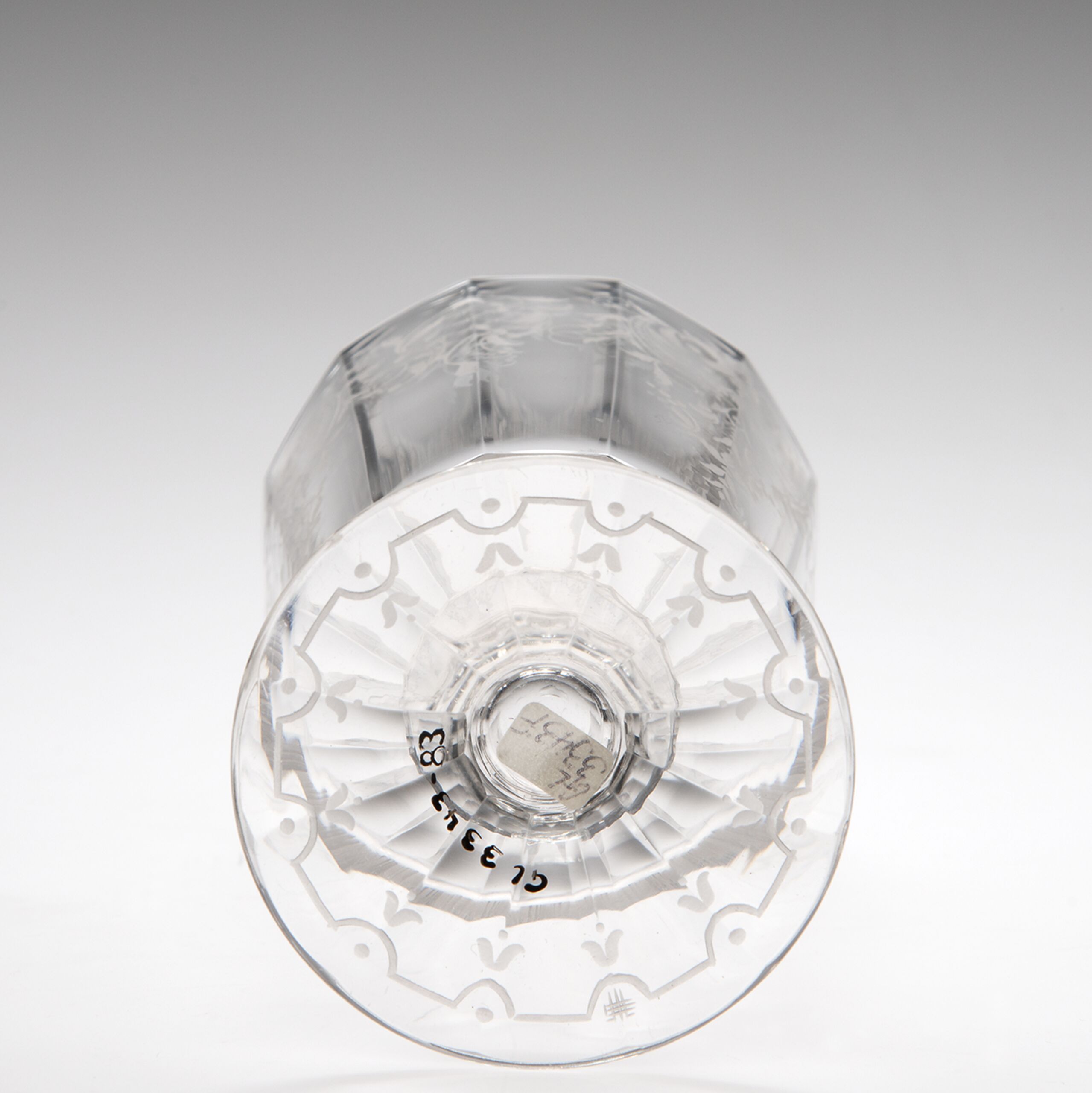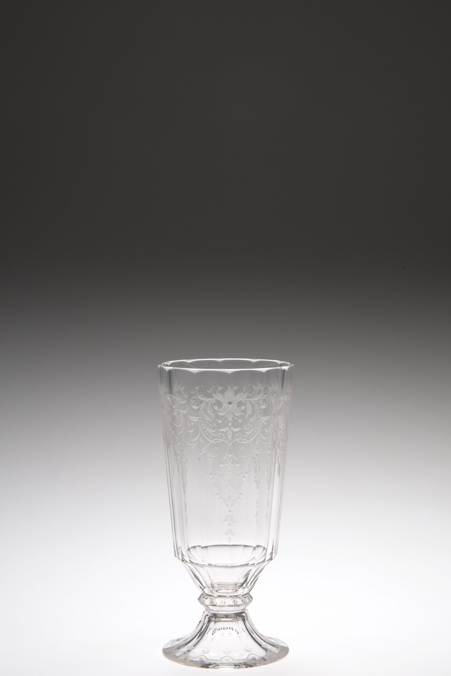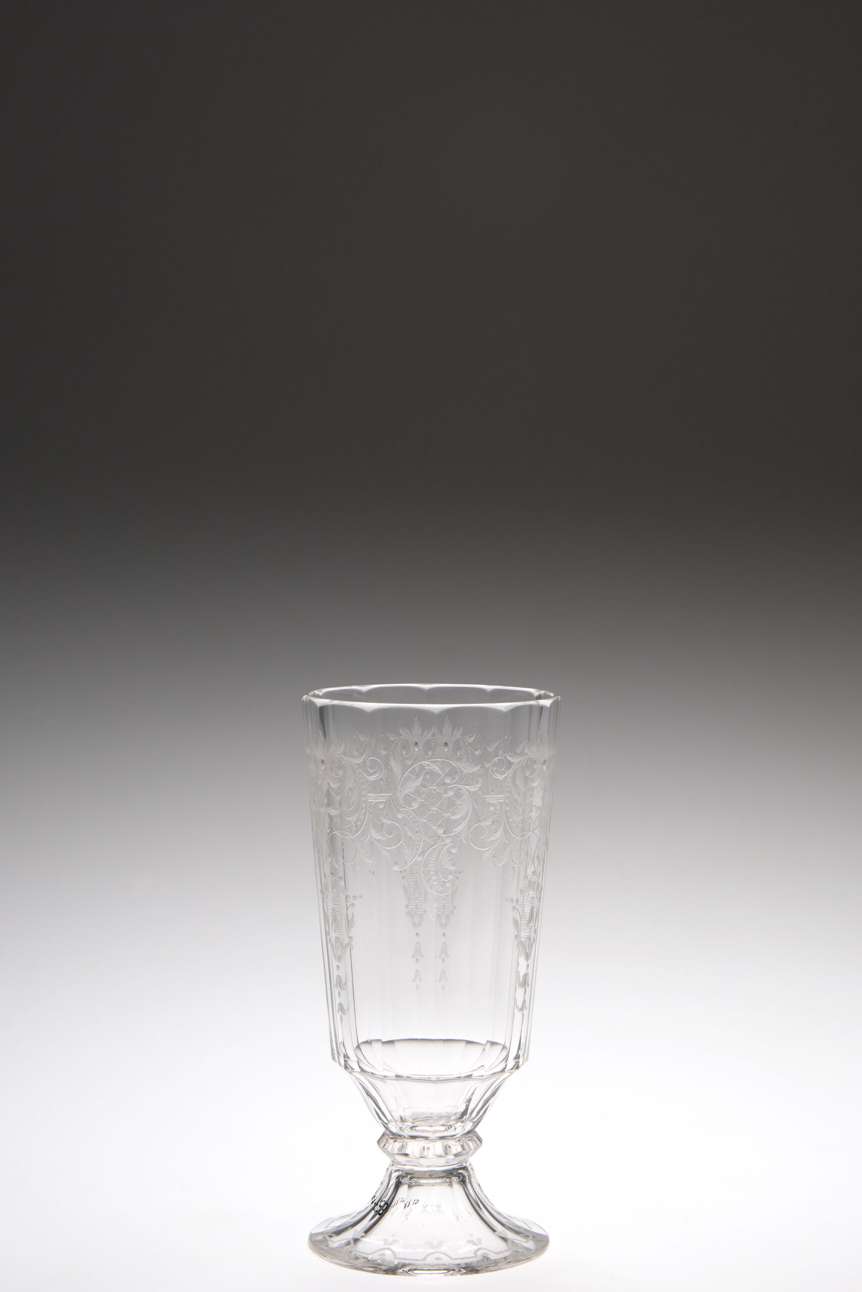 reich ornamentiert, geschliffen und graviert, hohe Becherform auf niedrigem Fuss