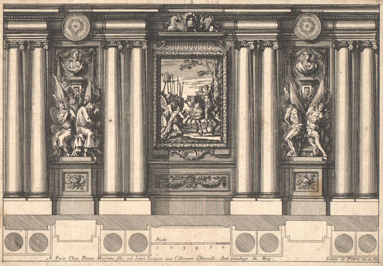 - Text am Objekt: Ce vendent a Paris chez Pierre Mariette rue St Iacques a lesperance avec privilege du Roy / I Le Pautre fecit 2