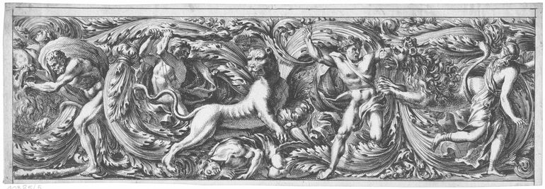 - Druckgrafik, Der Kampf der Zentauren, Blatt aus einer Folge von Friesen mit Schlachten und Meeresgöttern, herausgegeben von Jean Le Blond