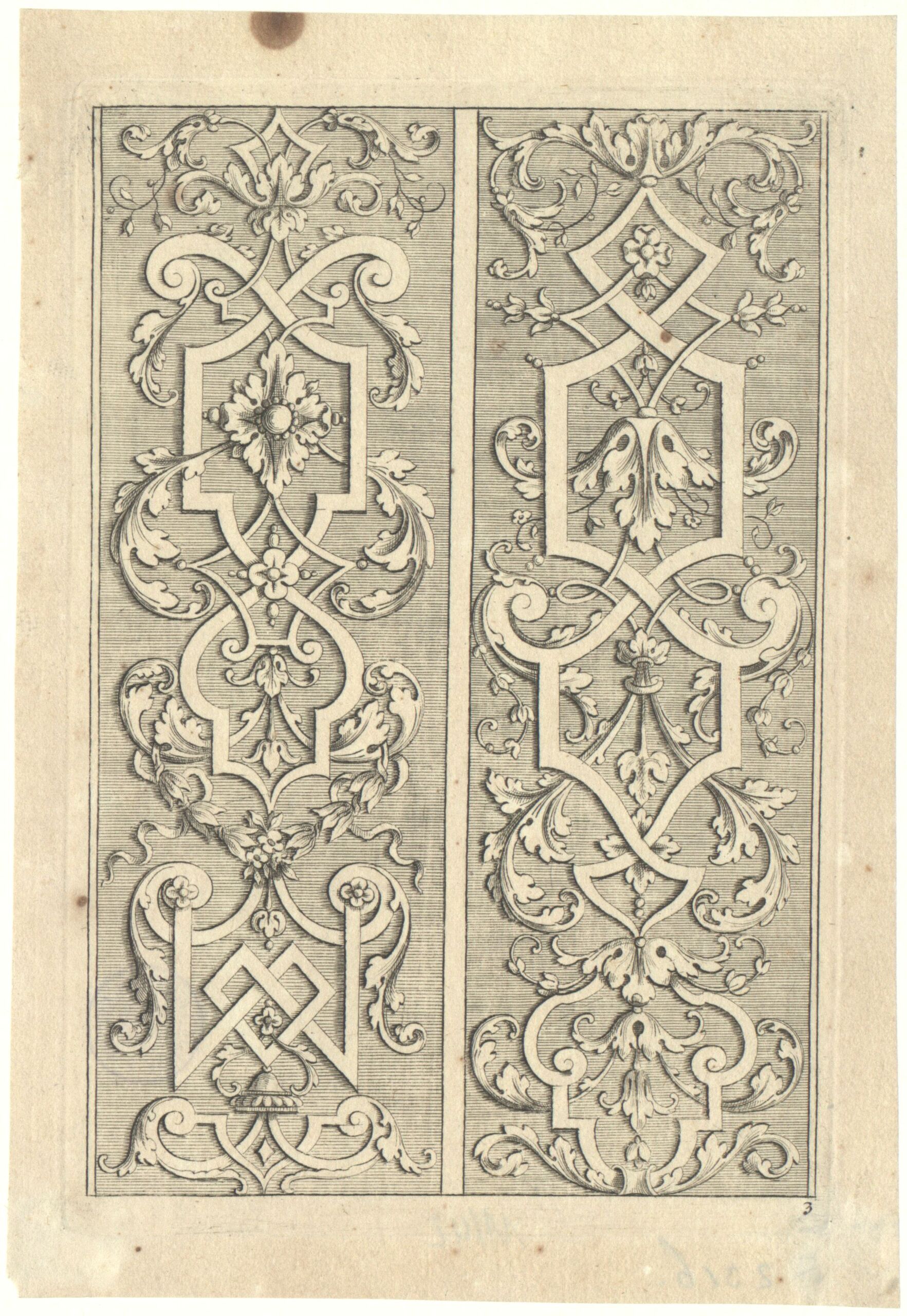 Ornamentstich, Blatt 3 der Folge „Neu inventirtes Laub und Bandel Werck. sechster Theil“, herausgegeben von Johann Christoph Weigel, Verlagsnummer 186, Johann Leonhard Eisler, MAK Inv.nr. KI 2316-5