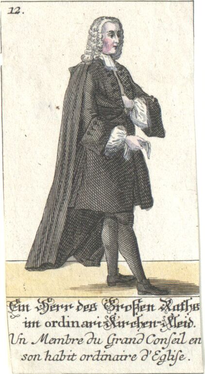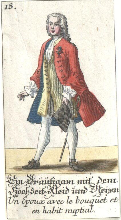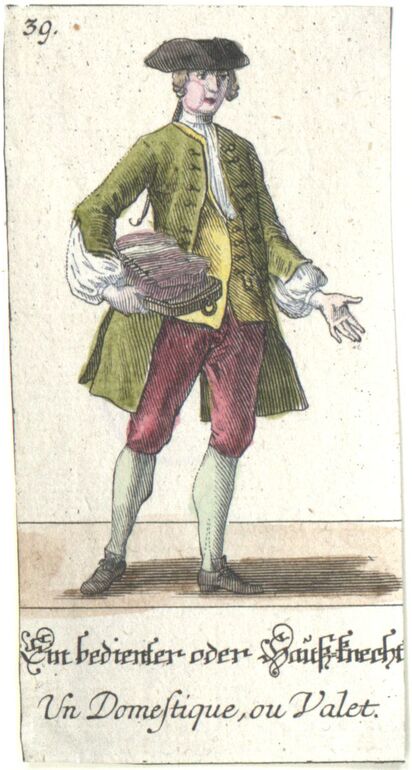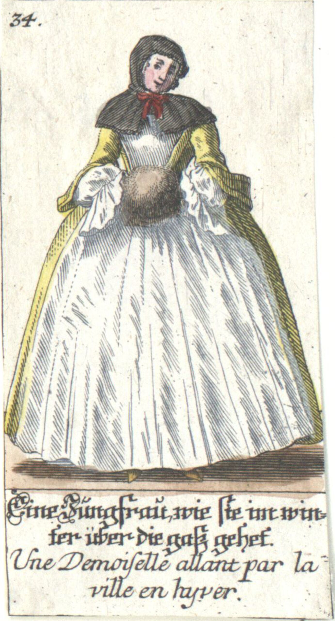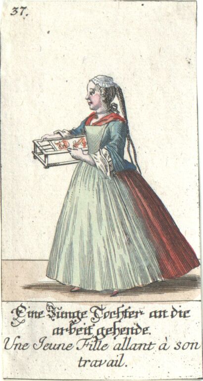 - Blatt 34 aus der Folge „Zürcherische Kleidertrachten etc.“, herausgegeben von David Herrliberger (vom Bearbeiter vergebener Titel)
