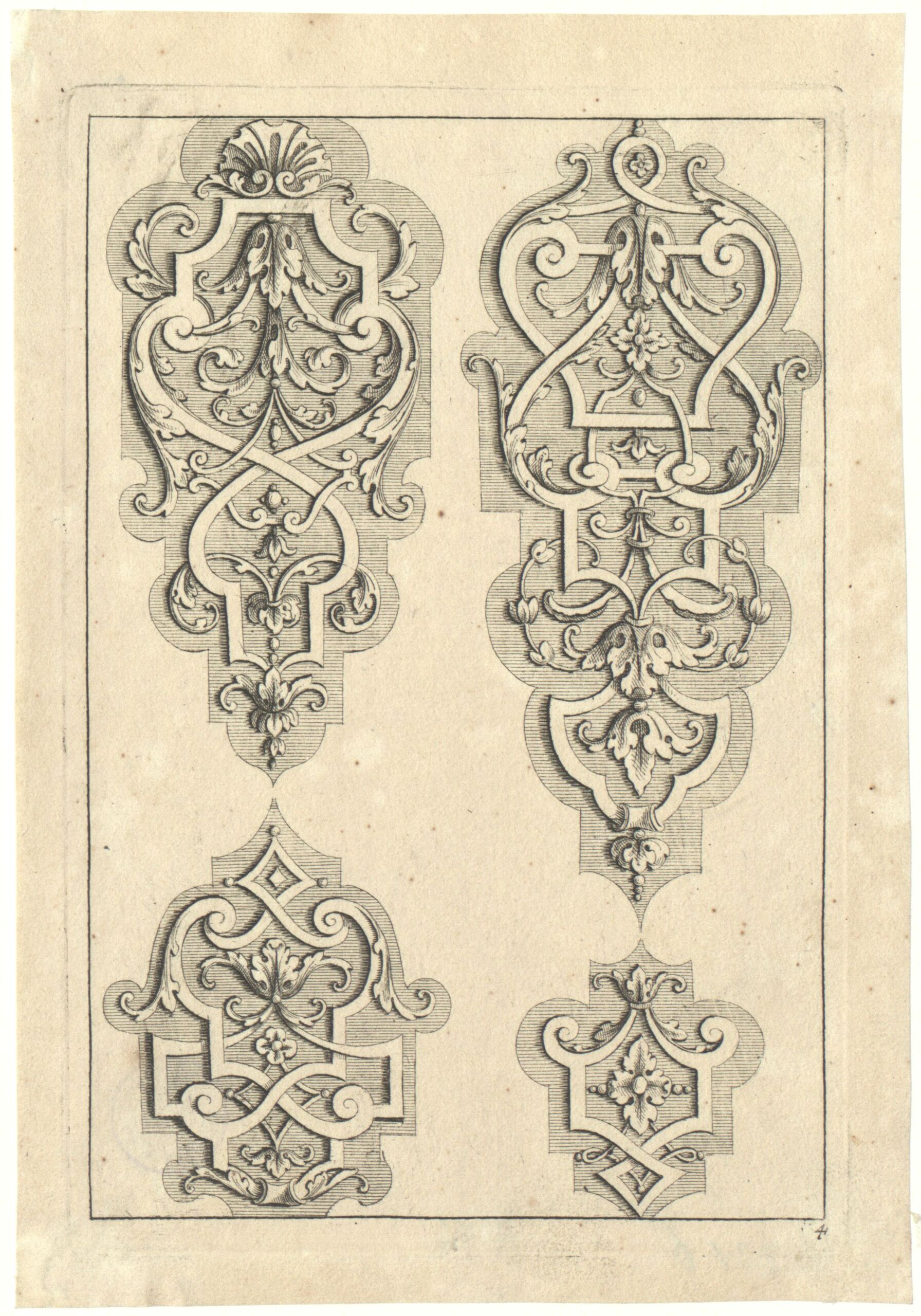 - Blatt 4 der Folge „Neu inventirtes Laub und Bandel Werck. sechster Theil“, herausgegeben von Johann Christoph Weigel, Verlagsnummer 186 (vom Bearbeiter vergebener Titel)