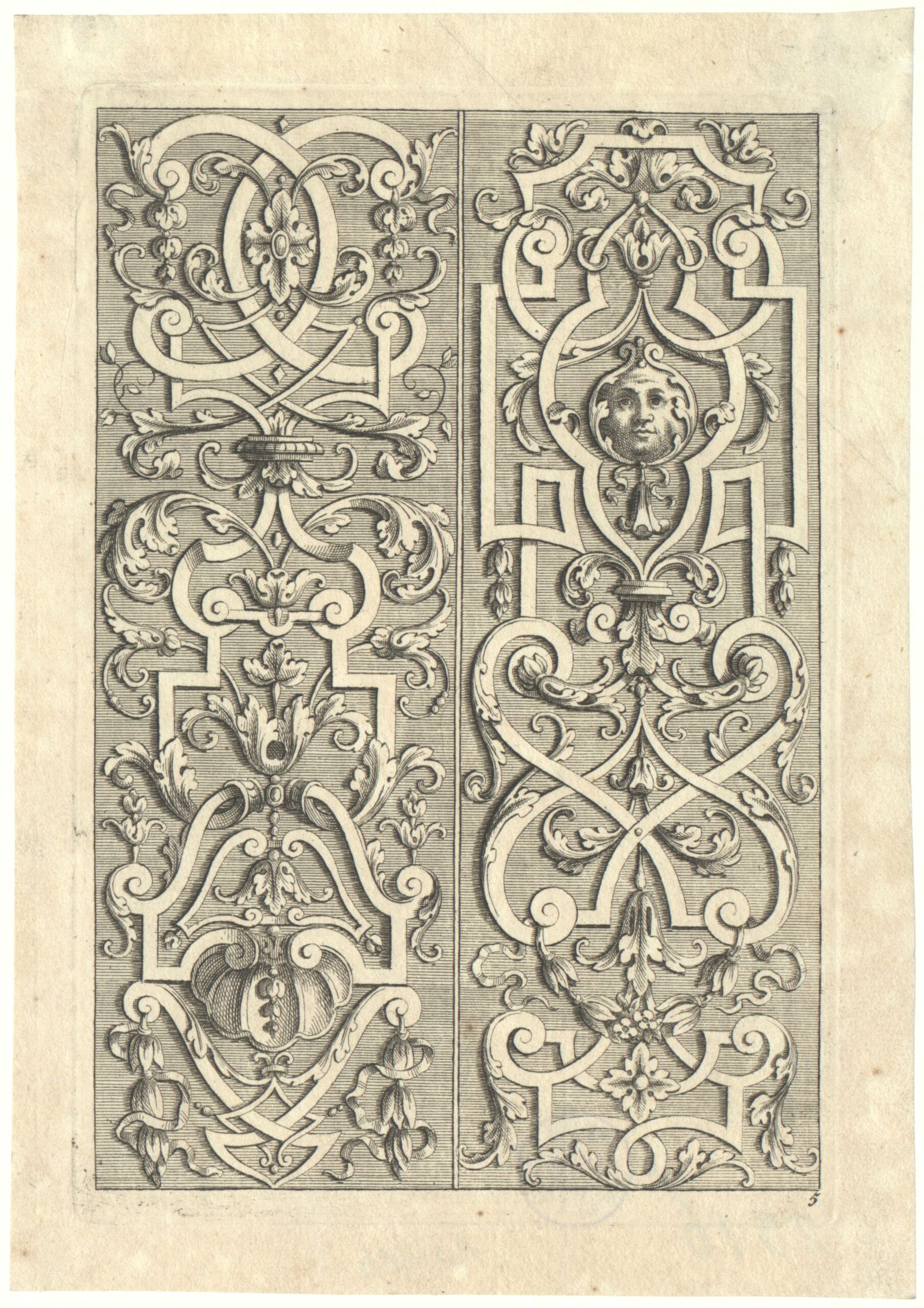 Ornamentstich, Blatt 5 der Folge „Neu inventirtes Laub und Bandel Werck. sechster Theil“, herausgegeben von Johann Christoph Weigel, Verlagsnummer 186, Johann Leonhard Eisler, MAK Inv.nr. KI 2316-3
