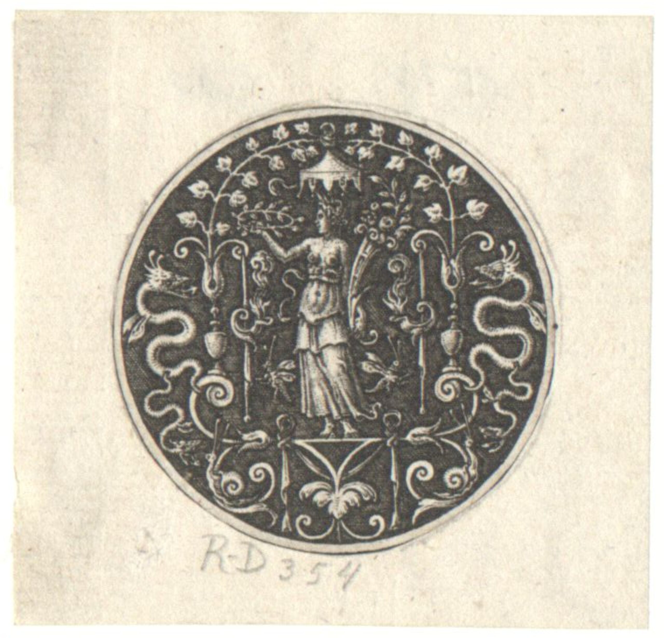 - Blatt aus der Folge der runden Grotesken auf schraffiertem Grund (Robert- Dumesnil Nr. 354) (vom Bearbeiter vergebener Titel)