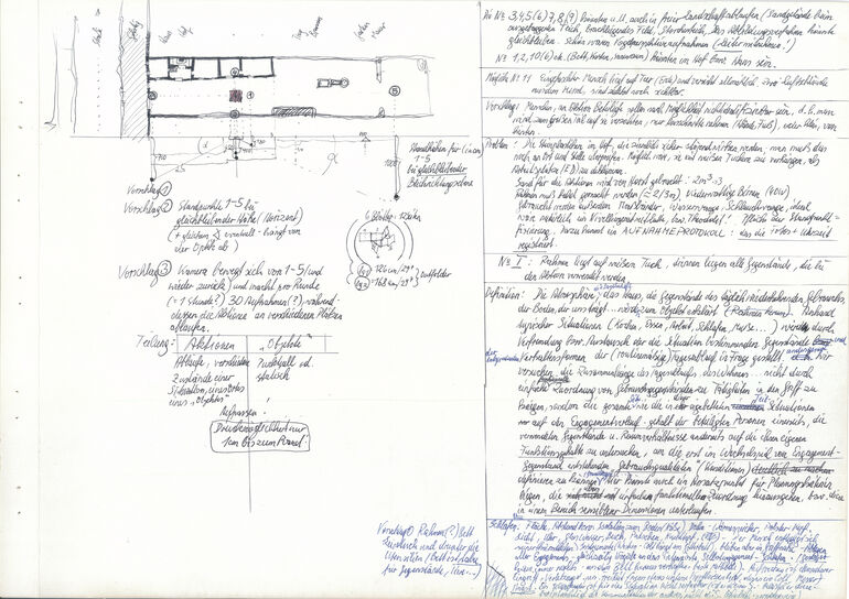 - Blatt mit Skizzen "Die Große Attrappe" aus einem Skizzenblock mit 25 Blatt um 1971/72 in A3-Querformat (vom Bearbeiter vergebener Titel)