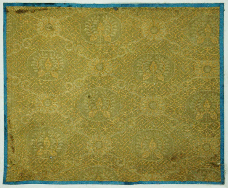 - Blumen- und Gittermuster auf beigem Grund (deskriptiver Titel)
