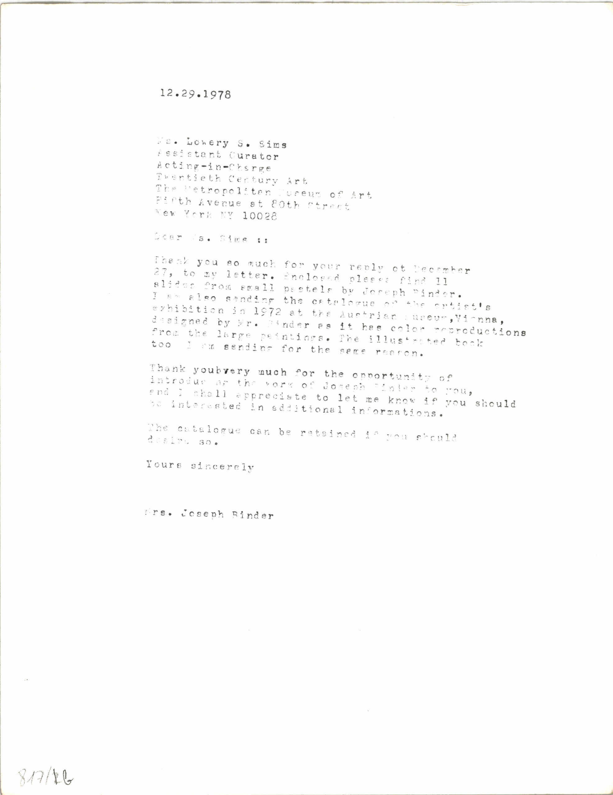 Transkription, Brief an das "The Museum of Modern Art" in New York, Carla Binder, MAK Inv.nr. KI 14145-817-2-1